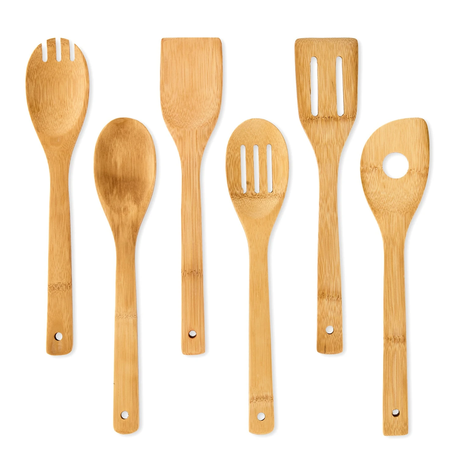 Pratico aiutante quotidiano: il set di accessori da cucina di alta qualità di Klarstein in vero bambù con impugnature di silicone.