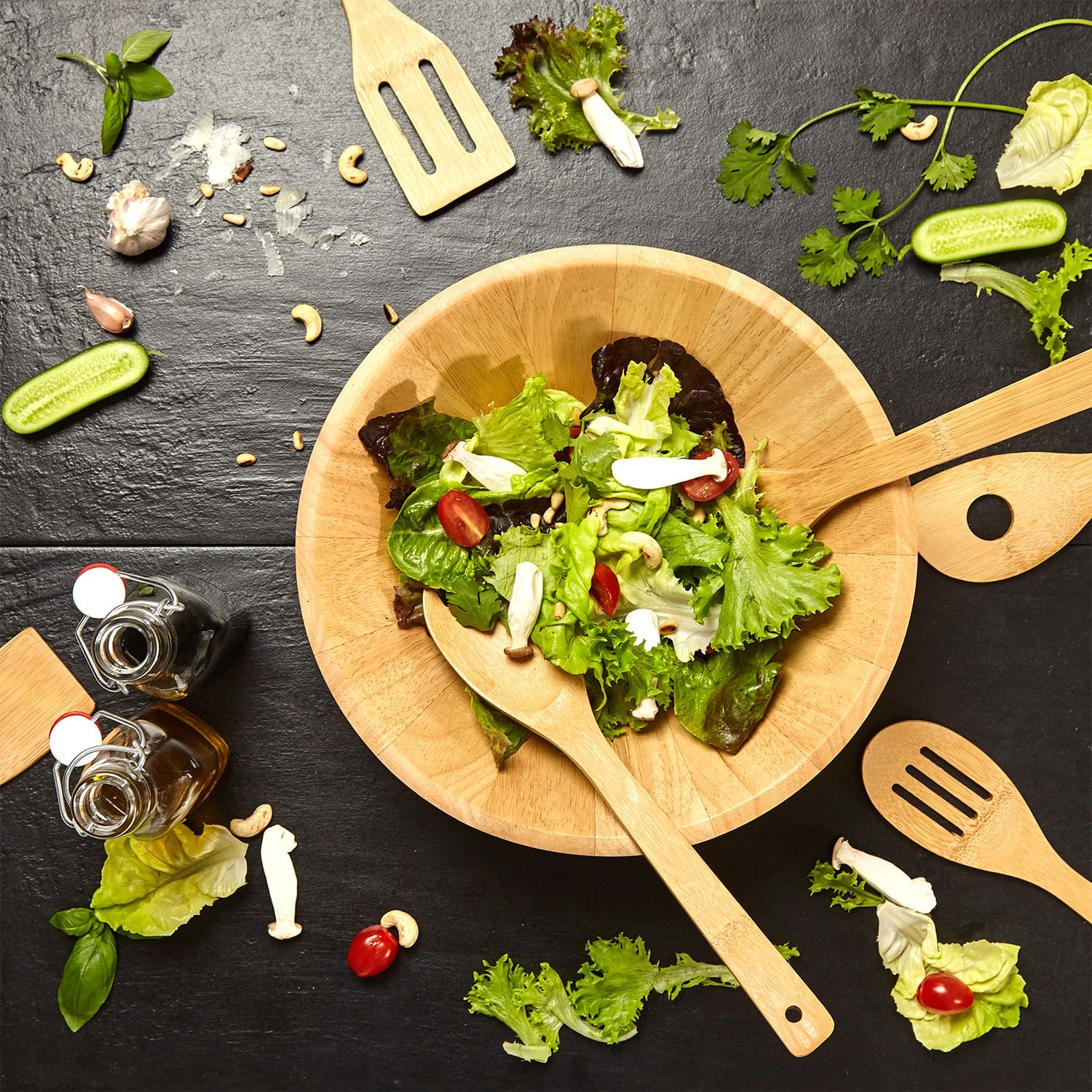Non solo per cuochi provetti: con il set da cucina con impugnatura in silicone di Klarstein, cucinare diventa ancora più facile e soddisfacente. Scopri questo utilissimo set dal fantastico design naturale. Il conveniente set con spatole e posate da insalata è assolutamente immancabile in ogni cucina. Grazie alle impugnature in silicone, assicura maneggevolezza e una piacevole sensazione al tatto. Le caratteristiche del bambù assicurano una preparazione delle tue pietanze neutrale sui sapori e una facile pulizia degli utensili. Per poter approfittare a lungo del tuo nuovo kit di accessori, ti consigliamo di lavare al mano il set di posate. Inoltre, ricordati di strofinare il legno non trattato con un po’ d’olio alimentare di tanto in tanto.