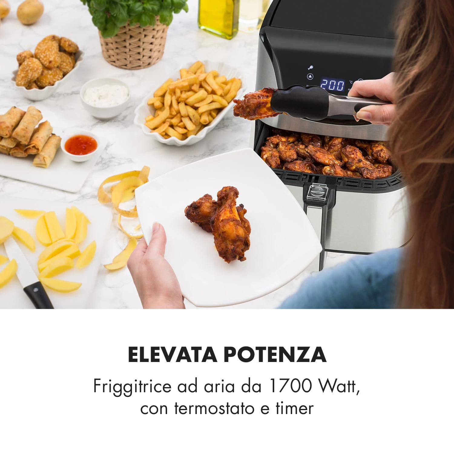 Con la friggitrice ad aria Aero Vital deluxe di Klarstein, la preparazione di piatti a basso contenuto di grassi è facile e rapida, senza rinunciare a sapori fantastici: addirittura le patatine fritte saranno croccantissime e deliziose.