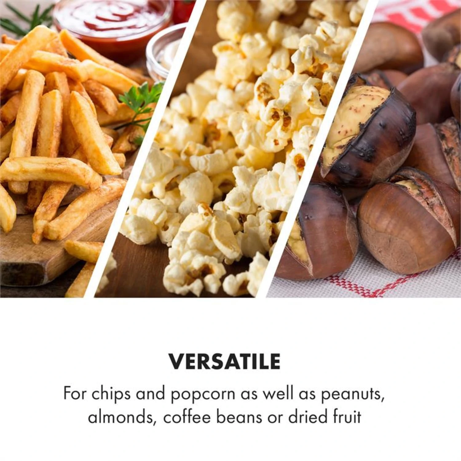 Il cestello rotante di Klarstein porta la friggitrice ad aria calda AeroVital Cube Chef ad un nuovo livello. Patatine fritte, squisiti popcorn o noccioline, mandorle e chicchi di caffè tostati in casa: un universo di delizie per voi e i vostri cari.