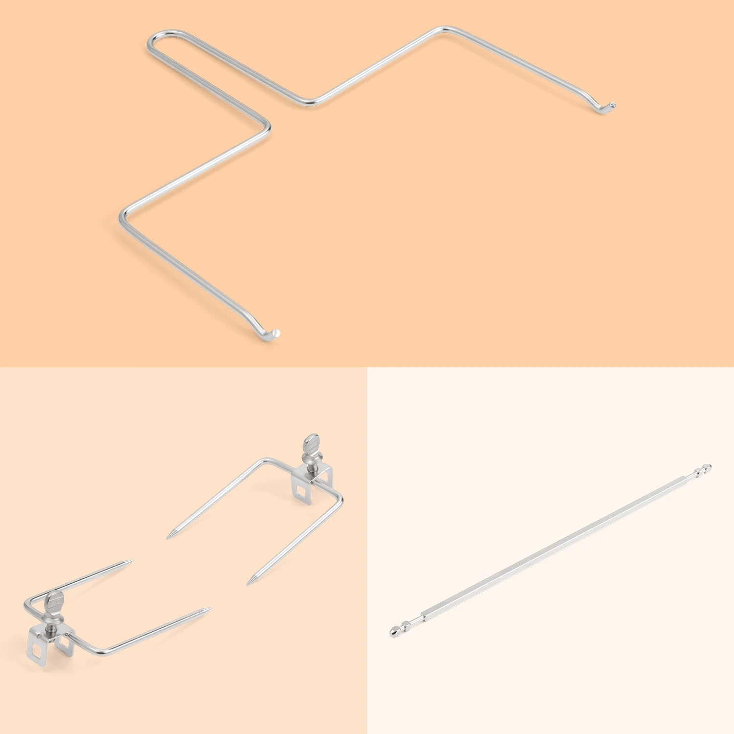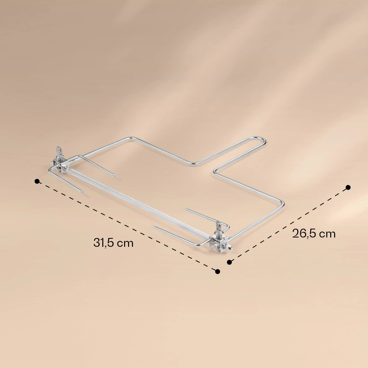 Con lo spiedo per girarrosto di Klarstein puoi preparare deliziosi polli arrosto nella friggitrice ad aria calda AeroVital Cube Jumbo con la massima facilità. Inserire ed estrarre il rotatore nel suo alloggiamento con l’aiuto del sollevatore dello spiedo non solo è un gioco da ragazzi, ma ti permette anche di proteggere le mani dal calore intenso. Il girarrostoè realizzato interamente in acciaio inox e non risulta solo estremamente resistente, ma anche facile da pulire.
