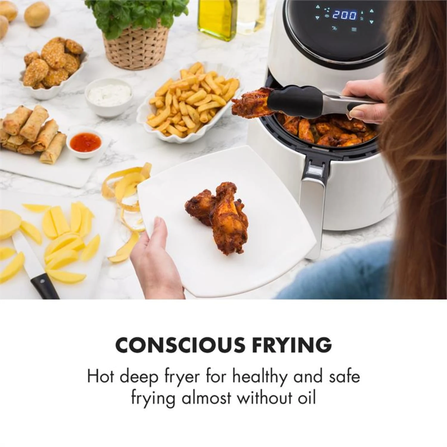 Squisite delizie dalla friggitrice con fino all’80% di calorie in meno? Sì, è possibile! Con la friggitrice ad aria AirVital di Klarstein si frigge, arrostisce, griglia e cuoce praticamente senza olio o grassi, per risultati croccanti, sani e deliziosi.