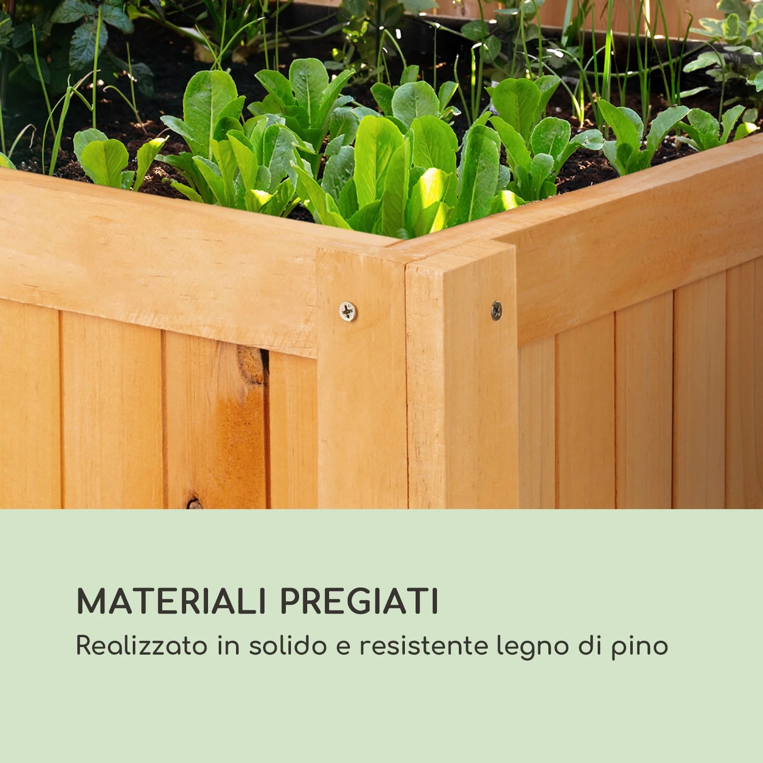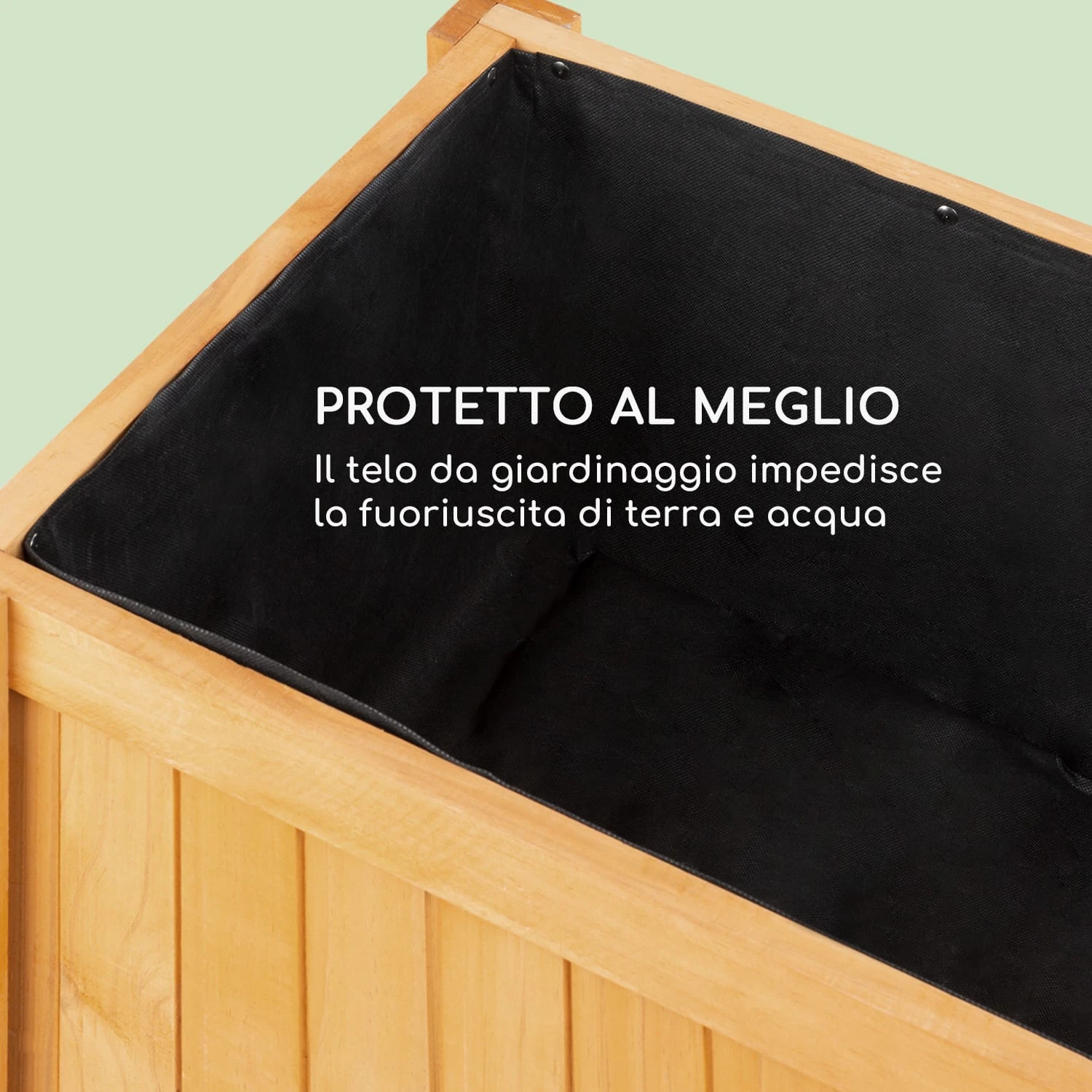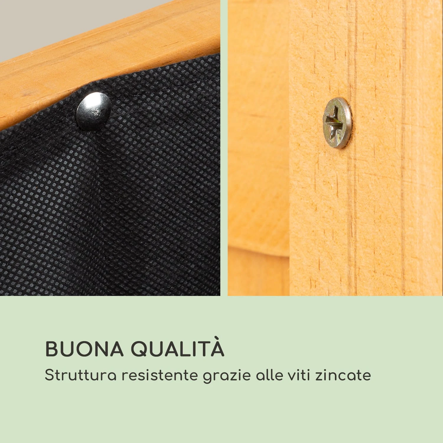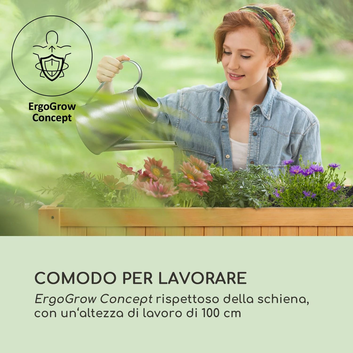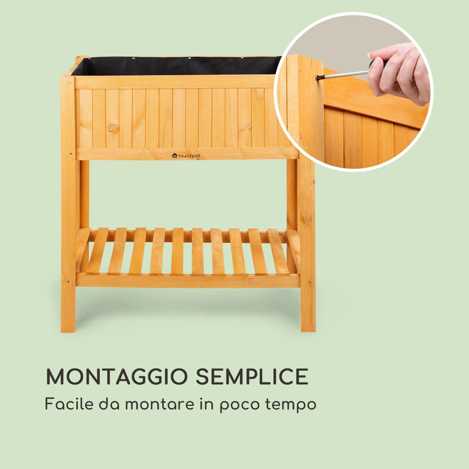 La fioriera rialzata Altiplano Cubic trasforma in un battibaleno balcone, cortile o terrazzo in un piccolo giardino. Su una superficie di 93 x 43 cm puoi sbizzarrirti a coltivare, piantare e annaffiare – e la cosa migliore è che non ti devi nemmeno chinare per farlo! Grazie all’ErgoGrow Concept e all’altezza di 100 cm si può comodamente lavorare in piedi. La fioriera rialzata Altiplano Cubic in legno di pino robusto non è soltanto particolarmente sostenibile, resistente e stabile – il legno e il verde delle piante conferiscono alla struttura un aspetto di calore naturale. Un tessuto non tessuto fornito in dotazione protegge il legno dall’umidità e dalla terra, per prolungare il piacere di coltivare. Grazie al facile montaggio la fioriera rialzata si monta in un battibaleno.