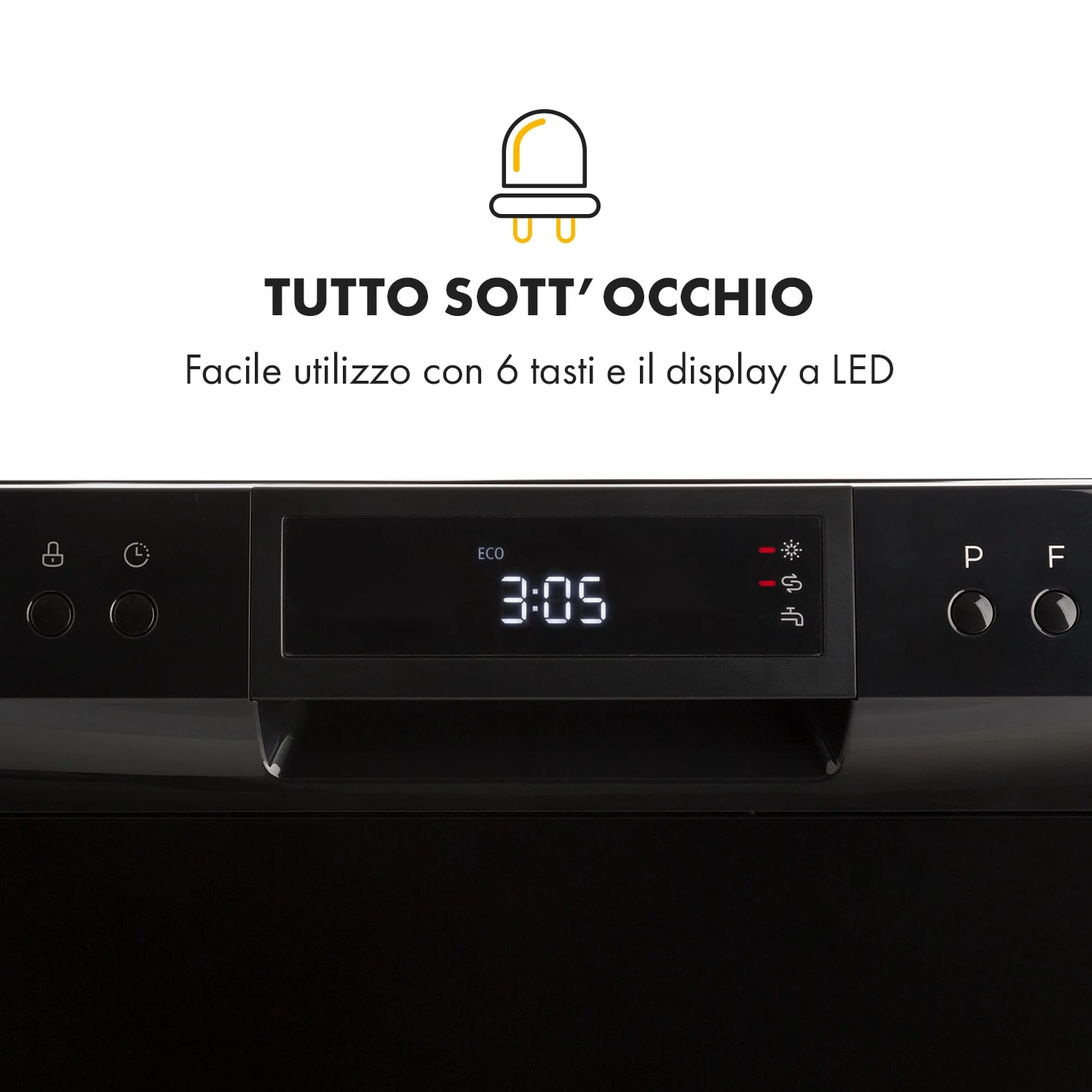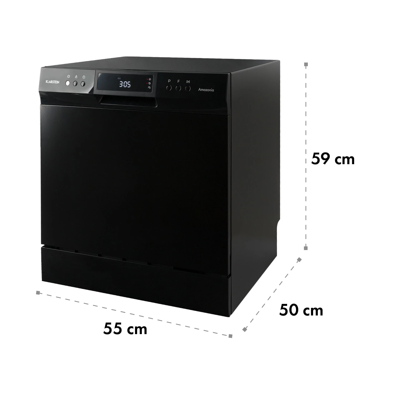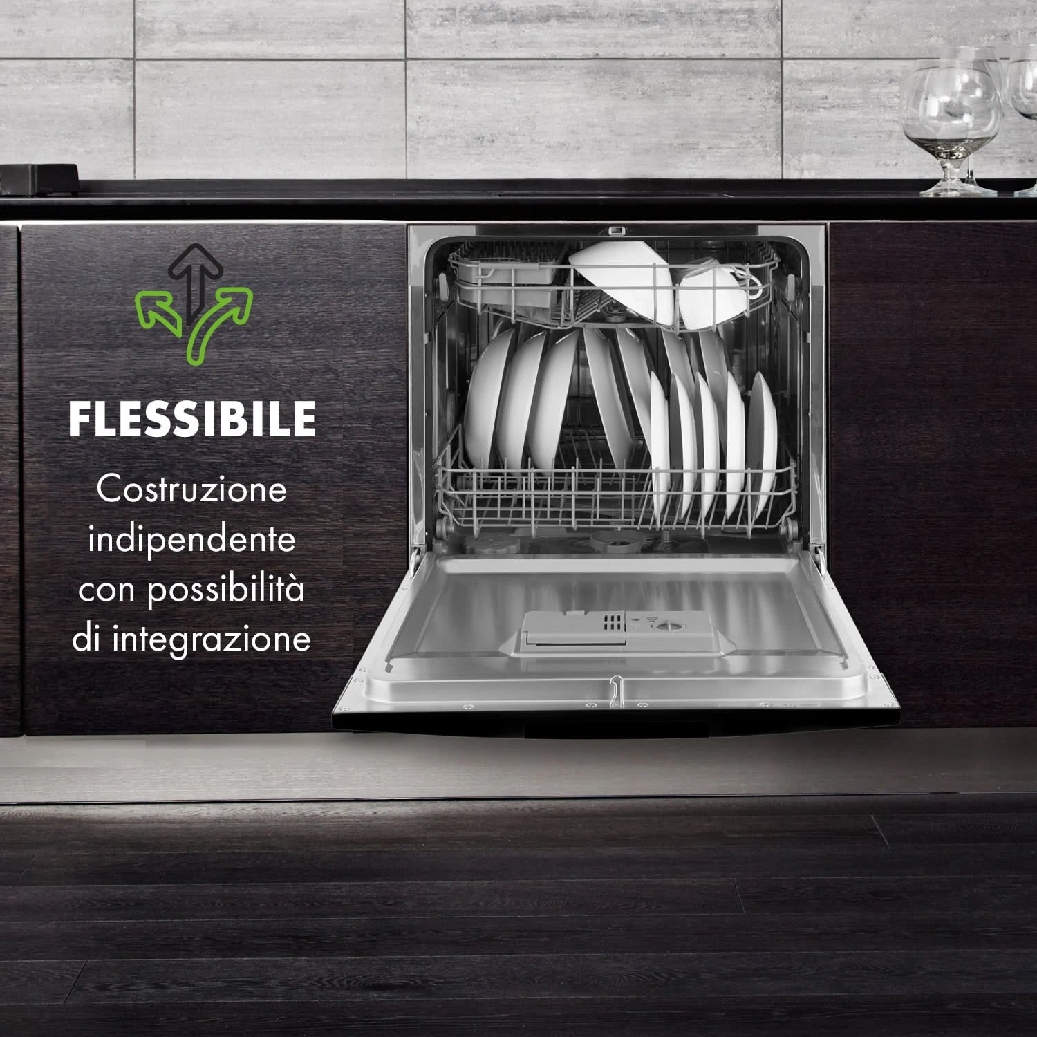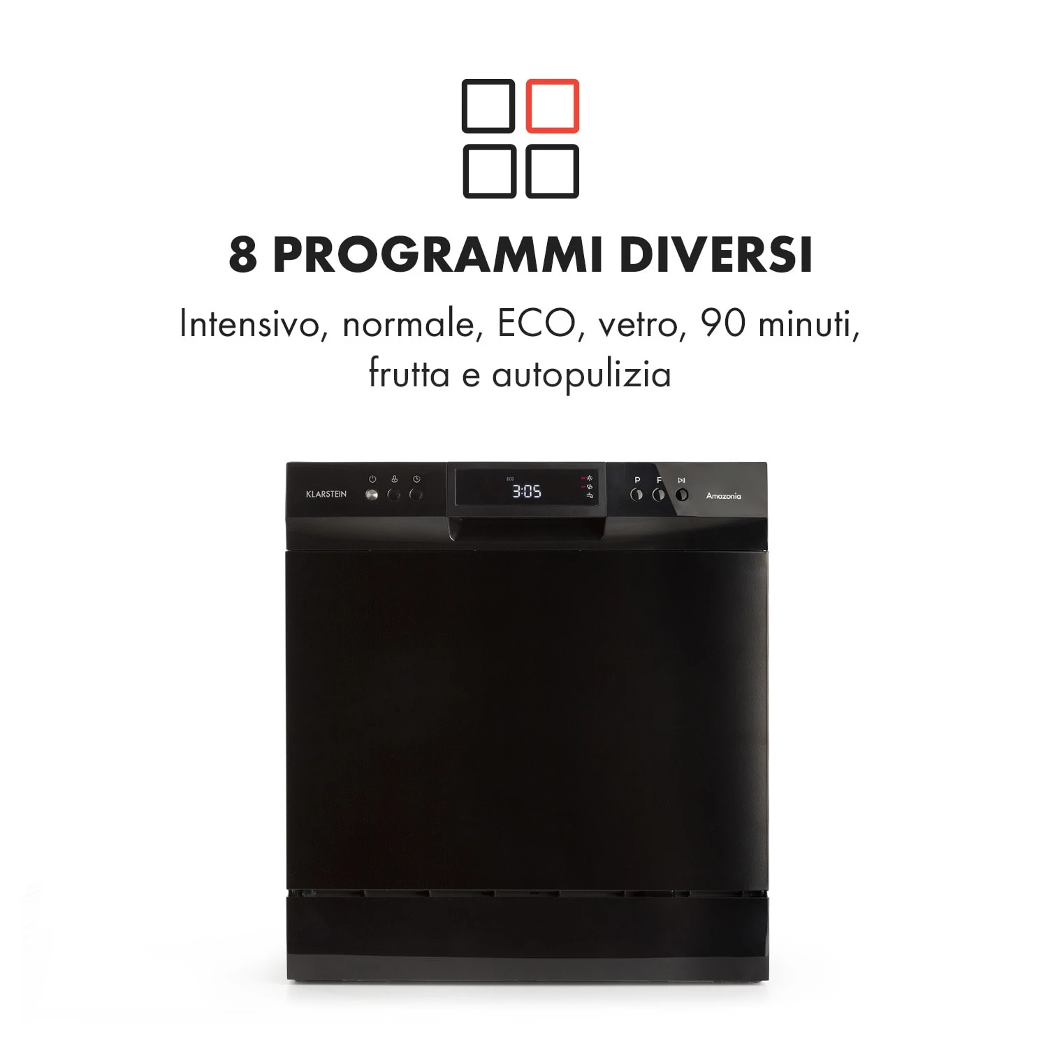 La lavastoviglie Amazonia 8 Neo di Klarstein è il piccolo assistente alla pulizia con un ingombro ridotto – l’aiuto perfetto per lavare le stoviglie dei single. Grazie a 8 programmi diversi, fino a 8 coperti saranno di nuovo puliti e brillanti per il prossimo pasto. È possibile far funzionare la lavastoviglie da tavolo molto semplicemente utilizzando il pannello di controllo touch.