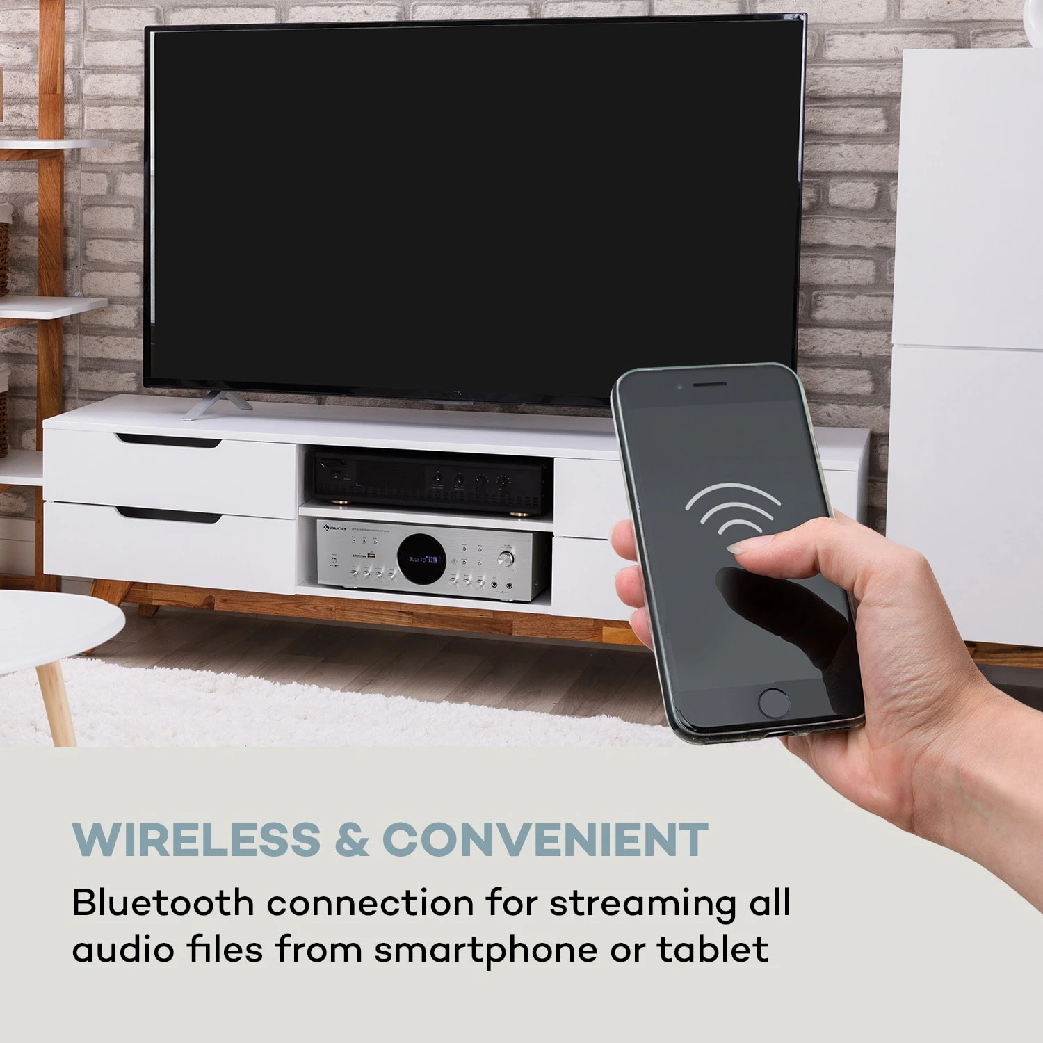 Compatto, potente e versatile: con l’amplificatore surround 5.1 auna AMP-218 BT, l’home cinema riceve un’ottimizzazione intelligente del suono.