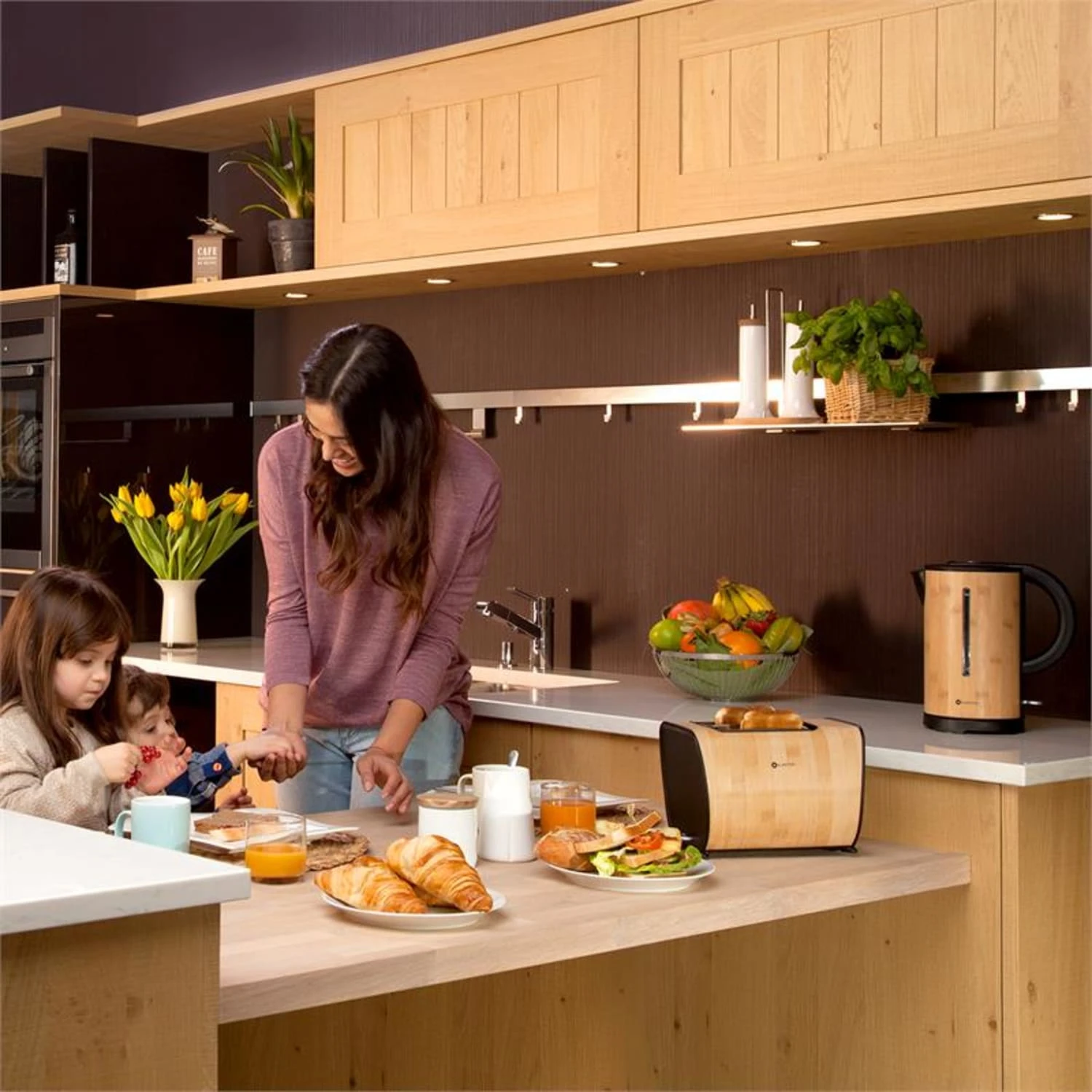 Il tostapane Bamboo Garde di Klarstein porterà sul vostro tavolo imbandito per la colazione il tocco piacevole di un giardino giapponese in stile zen. Il set comprende un bollitore e un tostapane con doppio vano e rappresenta il punto di partenza fondamentale del mattino.