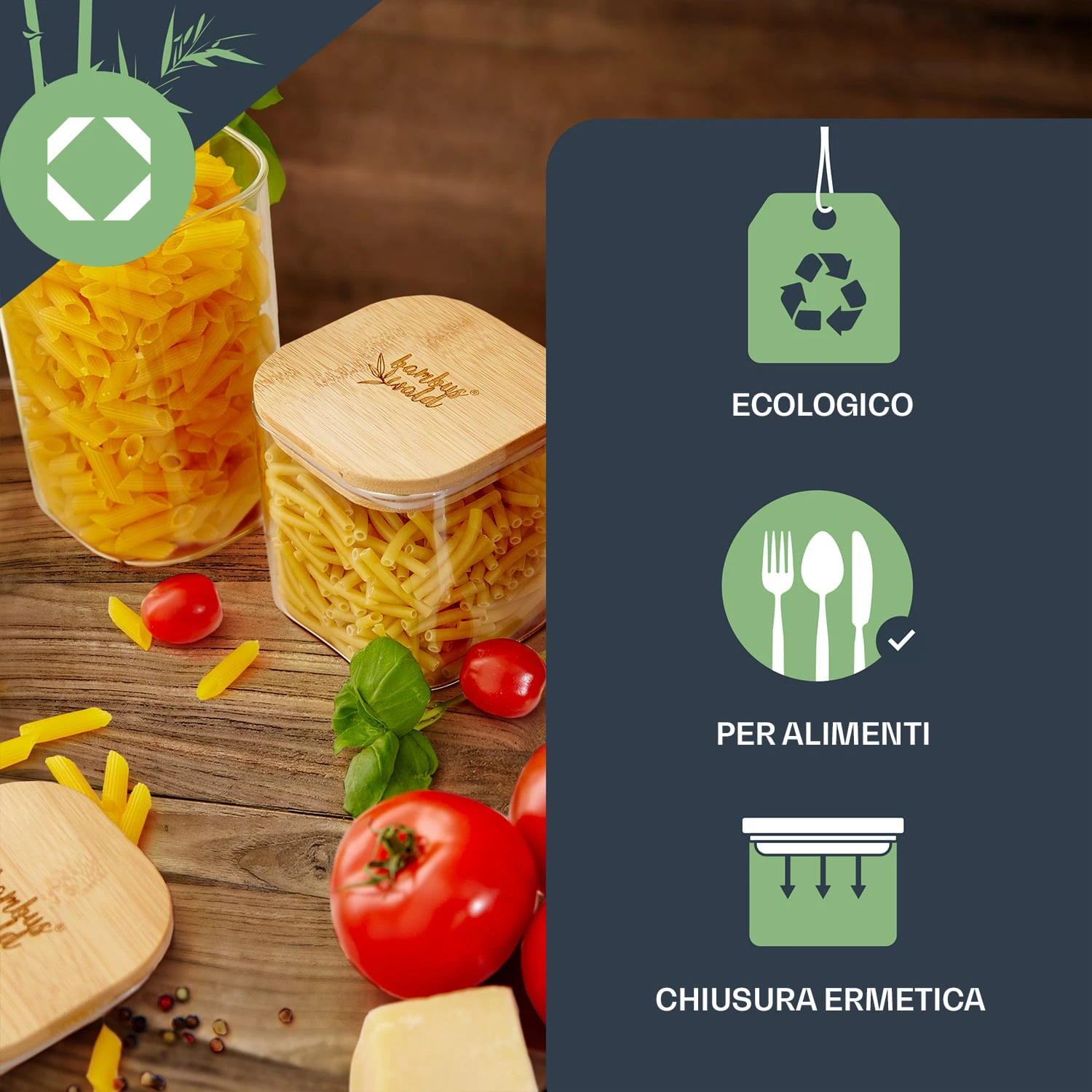 Con il barattolo quadrato di alta qualità con coperchio di bambù di Klarstein potrai conservare al meglio i tuoi alimenti e mantenerne a lungo la freschezza. Il bellissimo coperchio ermetico in 100% bambù permette di mantenere immutati gli aromi. Grazie all’anello in silicone presenta una tenuta ermetica aggiuntiva. Il coperchio è inoltre resistente all’umidità e particolarmente durevole. Il barattolo per conserve di Klarstein è neutrale sui sapori e resistente al caldo e al freddo. Per una facile pulizia, il barattolo può essere messo in lavastoviglie senza coperchio.