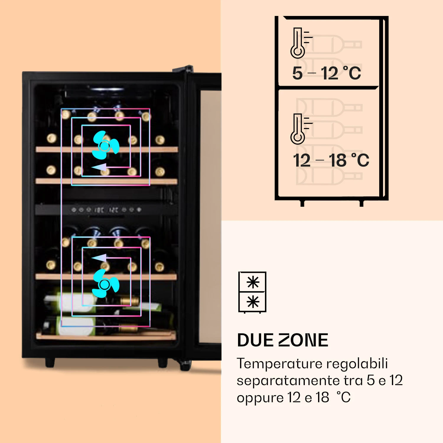 | Numero di zone di raffreddamento | 2 zone di raffreddamento, 1 zona di raffreddamento |