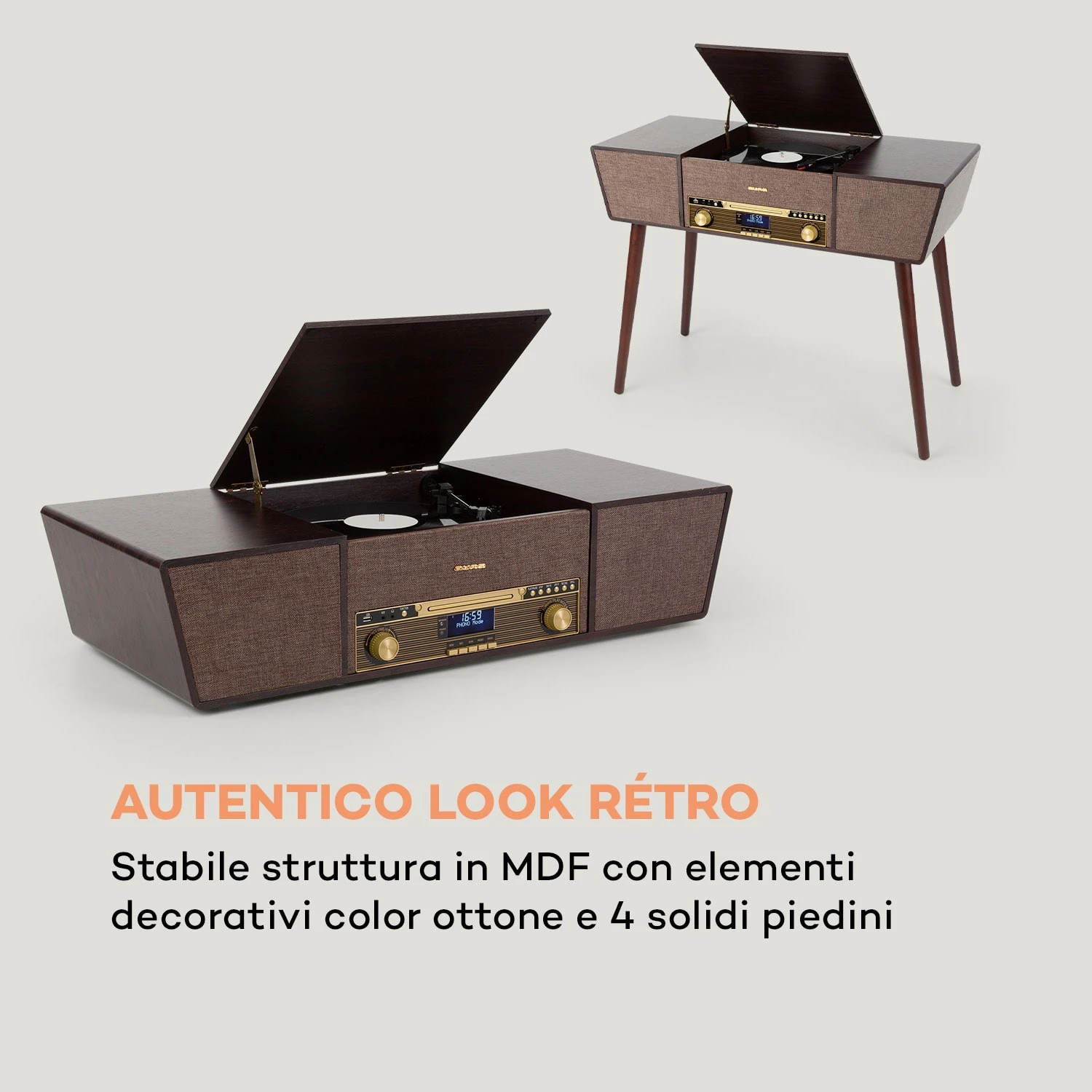 Il giradischi retrò Belle Epoque 1912 di auna è un notevole lettore stereo dal design elegante, che unisce il meglio del passato con la tecnologia del futuro.
