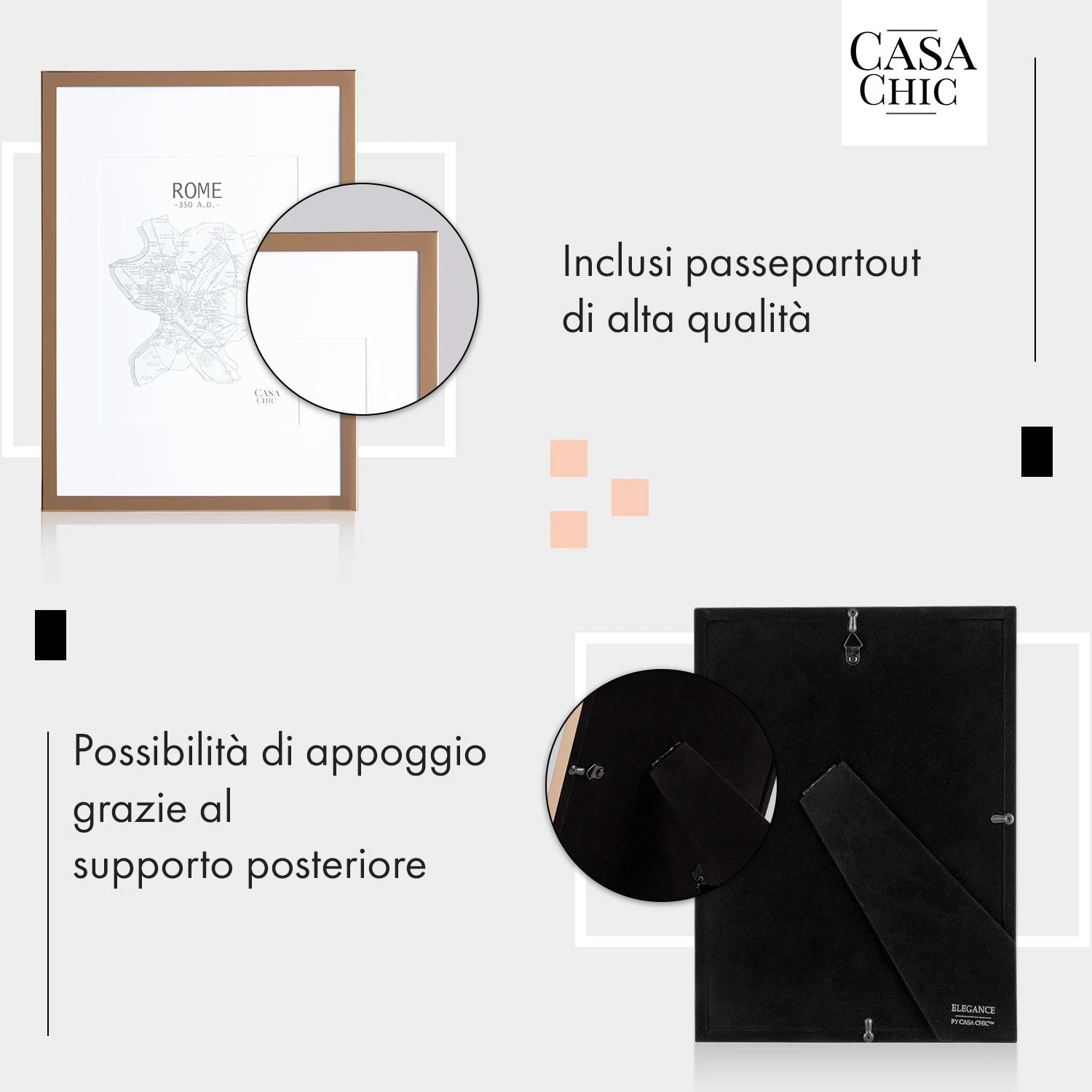 Le cornici Berwick di Casa chic by blumfeldt portano una nuova eleganza a casa tua. Metti abilmente in risalto le tue foto preferite – con o senza passepartout: da appoggiare in formato orizzontale o verticale oppure da appendere alla parete come classica cornice. Ogni immagine cattura l’attenzione sotto la lastra di vetro. Il sostegno d’alta qualità posizionato sul retro facilita l’inserimento o la sostituzione delle foto.