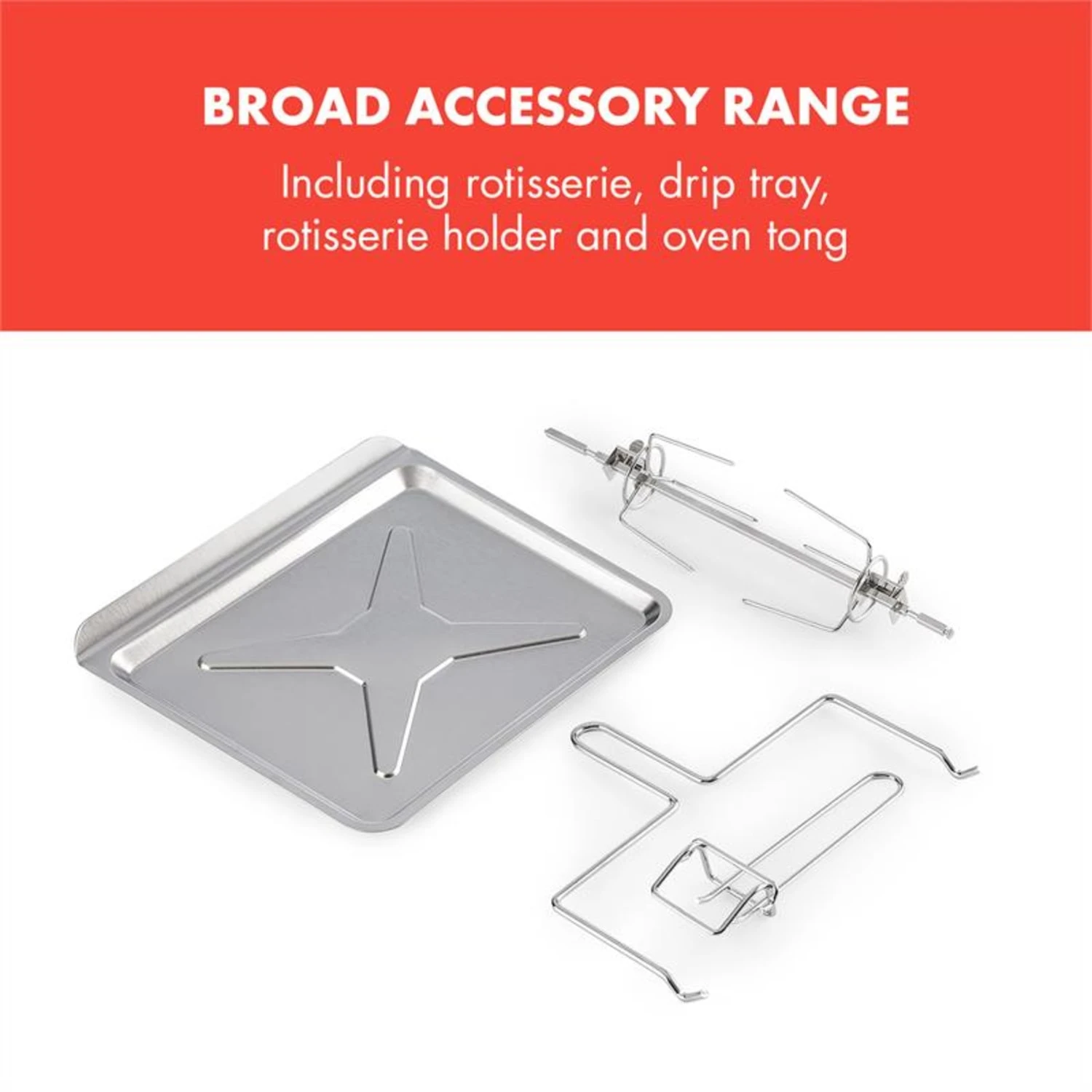 Con il set di accessori completo potrete sfruttare al meglio tutte le funzioni del forno a pressione Blaise d Klarstein. Accanto al girarrosto con vaschetta di raccolta per il grasso per preparare pollo o spiedini, si trovano una teglia per torte e dolci, una griglia per pizza e una gabbia per preparare con pochi grassi croccantissime patatine, crocchette o alette di pollo. Per finire si trovano inclusi il supporto per girarrosto e la pinza da forno, con cui raggiungere comodamente le vostre pietanze.