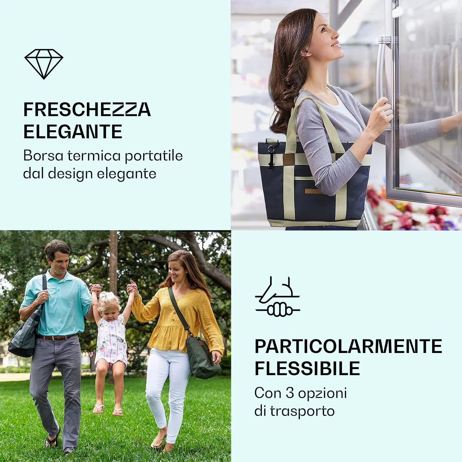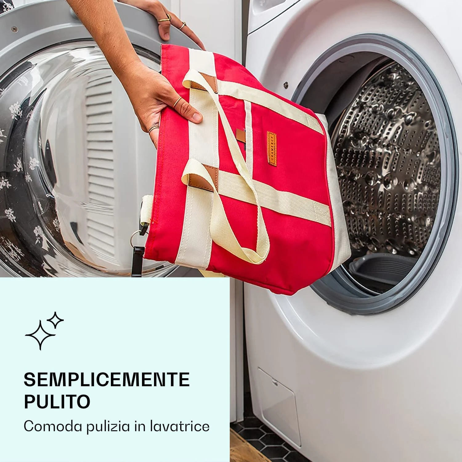 La nostra borsa termica di Gramercy by Klarstein è perfetta per mantenere a lungo la temperatura dei tuoi prodotti preferiti, sia caldi che freddi! La borsa da viaggio con isolamento è inoltre completamente a prova di perdita e ha una tasca esterna altrettanto isolata, ideale per tenere i tuoi dispositivi elettronici lontani dai liquidi e per raggiungere con facilità chiavi o altri oggetti. Puoi portare la borsa termica su una spalla come una borsetta, a tracolla con una cinghia regolabile e rimovibile, o lateralmente con entrambe le mani per trasportare una pizza calda o uno sformato. Non devi neanche preoccuparti della pulizia: la nostra borsa termica portatile è lavabile e può essere ripiegata per essere messa via facilmente!