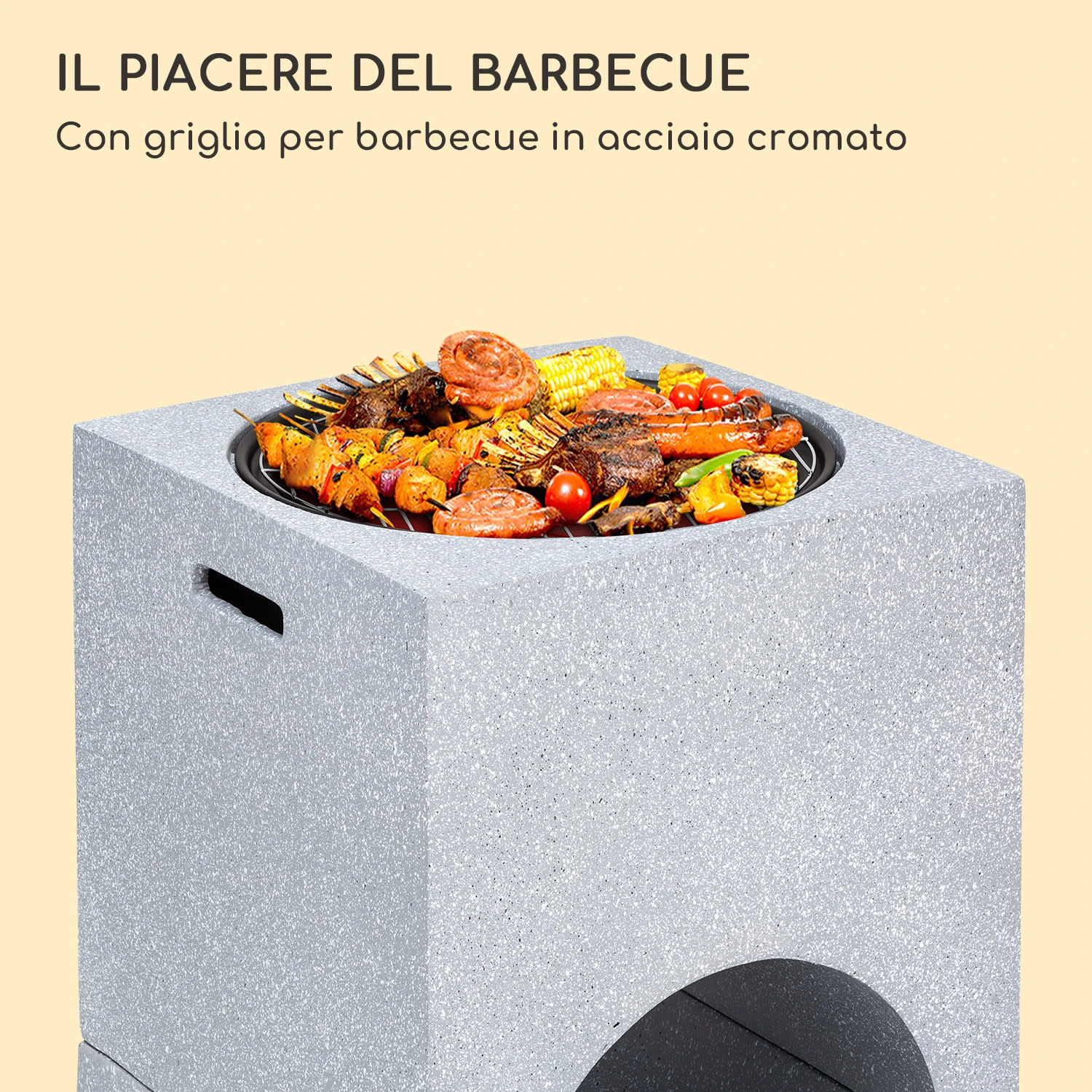 Il bellissimo braciere è realizzato in fibra di argilla di magnesio, robusta e leggera e con una struttura in acciaio di alta qualità. Dotato di un pratico vano portaoggetti in legno, convince per il gradito spazio di archiviazione e valorizza con discrezione l’ambiente del giardino. Dalla griglia in acciaio cromato sulla parte superiore, l’attenzione passa dallo sfarfallio del fuoco direttamente al palato con salsicce, bistecche, spiedini di verdure o persino formaggio alla griglia. La fornitura comprende anche un pratico parascintille per proteggere chiunque si trovi nella zona. Grazie alle due maniglie di trasporto laterali, il braciere con griglia Monolith di blumfeldt può essere trasportato e spostato in qualsiasi momento.
