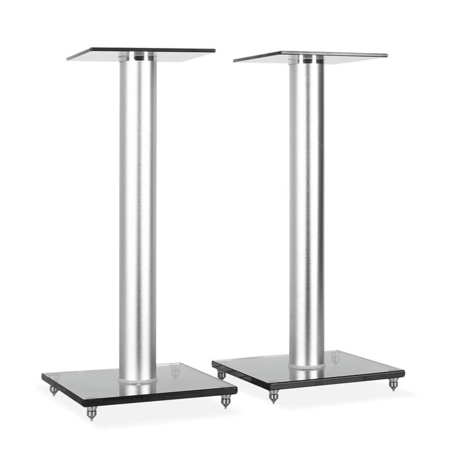 Posizionamento in pieno stile per le vostre casse HiFi: la coppia di stativi per casse acustiche BS58 risplende con il suo design in vetro e metallo in stile Bauhaus e con la loro struttura a colonna alta 58 cm rivolgono i vostri altoparlanti nella giusta direzione. I pannelli in vetro di sicurezza spessi 0,6 cm garantiscono spazio sufficiente per il posizionamento di casse con una superficie di fondo fino a 20 x 20 cm. Le dimensioni del basamento degli stativi da 25 x 25 cm in vetro di sicurezza spesso 1,1 cm assicura l’impossibilità di ribaltamento. Per ridurre la trasmissione di vibrazioni sul pavimento, gli stativi sono poggiati su quattro spikes metallici ciascuno. Questi riducono inoltre l’assorbimento del suono e provvedono ad un sound migliore.
