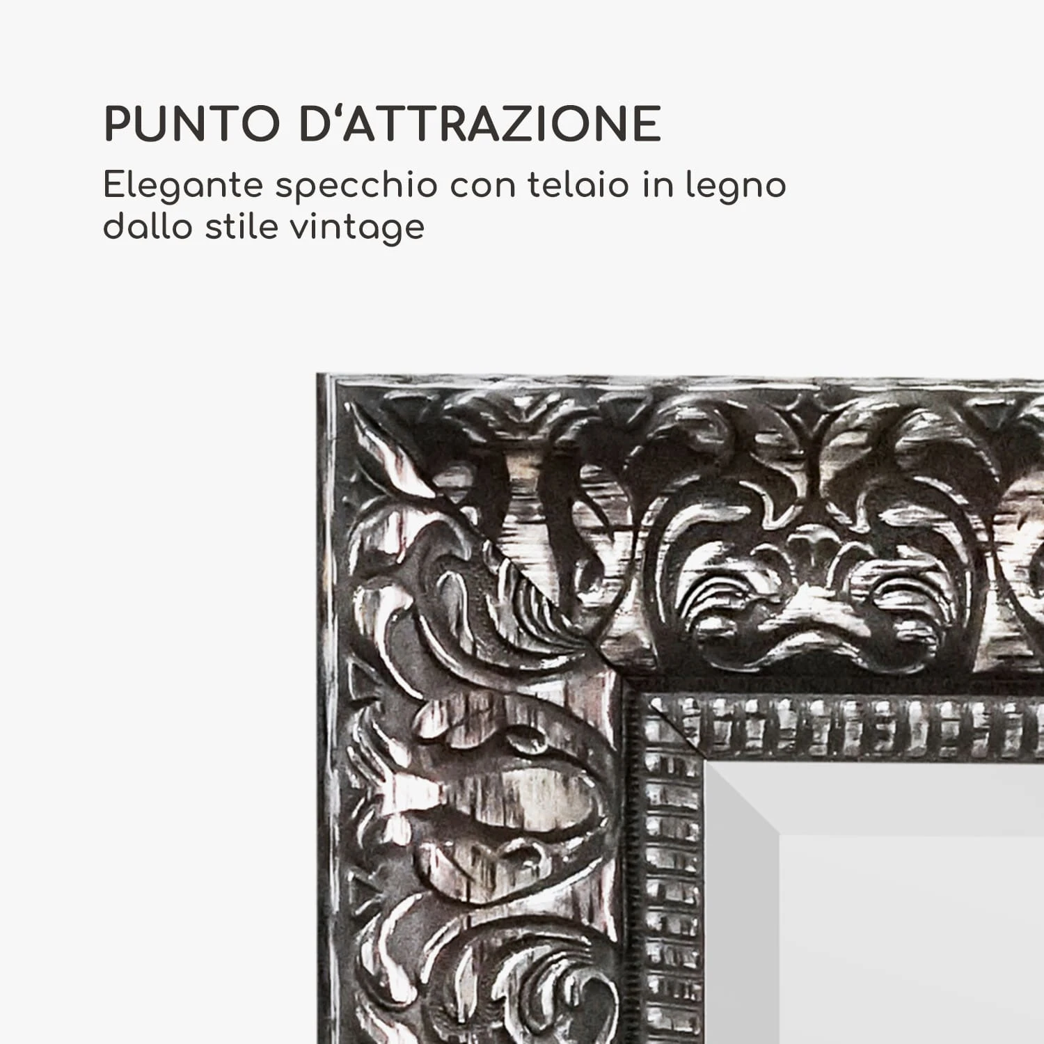 La tua casa merita qualcosa di speciale: lo specchio Chelsea di Casa Chic by blumfeldt dall’aspetto vintage conferisce a qualsiasi stanza una dose extra di stile. La sua cornice di legno disegnata è realizzata in un delicato design shabby chic e racchiude perfettamente l’ampia superficie con sfaccettatura dello specchio. Può essere usato sia come specchio da terra o da parete. Che sia posizionato in formato orizzontale sopra il divano o in formato verticale in camera da letto, lo specchio Chelsea cattura elegantemente l’attenzione ovunque.
