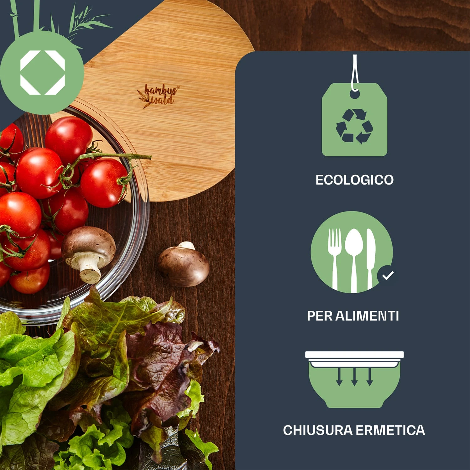 Sano e delizioso: con la pratica e resistente insalatiera di Klarstein, la tavola si apparecchia ancora meglio. Che si tratti di insalata di vario genere, zuppa, yogurt, muesli, dessert o popcorn, qui si può preparare di tutto e servirlo in modo attraente. La ciotola di vetro di alta qualità è lavabile in lavastoviglie e resistente al caldo e al freddo. Grazie al suo coperchio di bambù senza BPA e melamina, si chiude in modo sicuro – ideale per la conservazione del cibo, i buffet o i picnic.