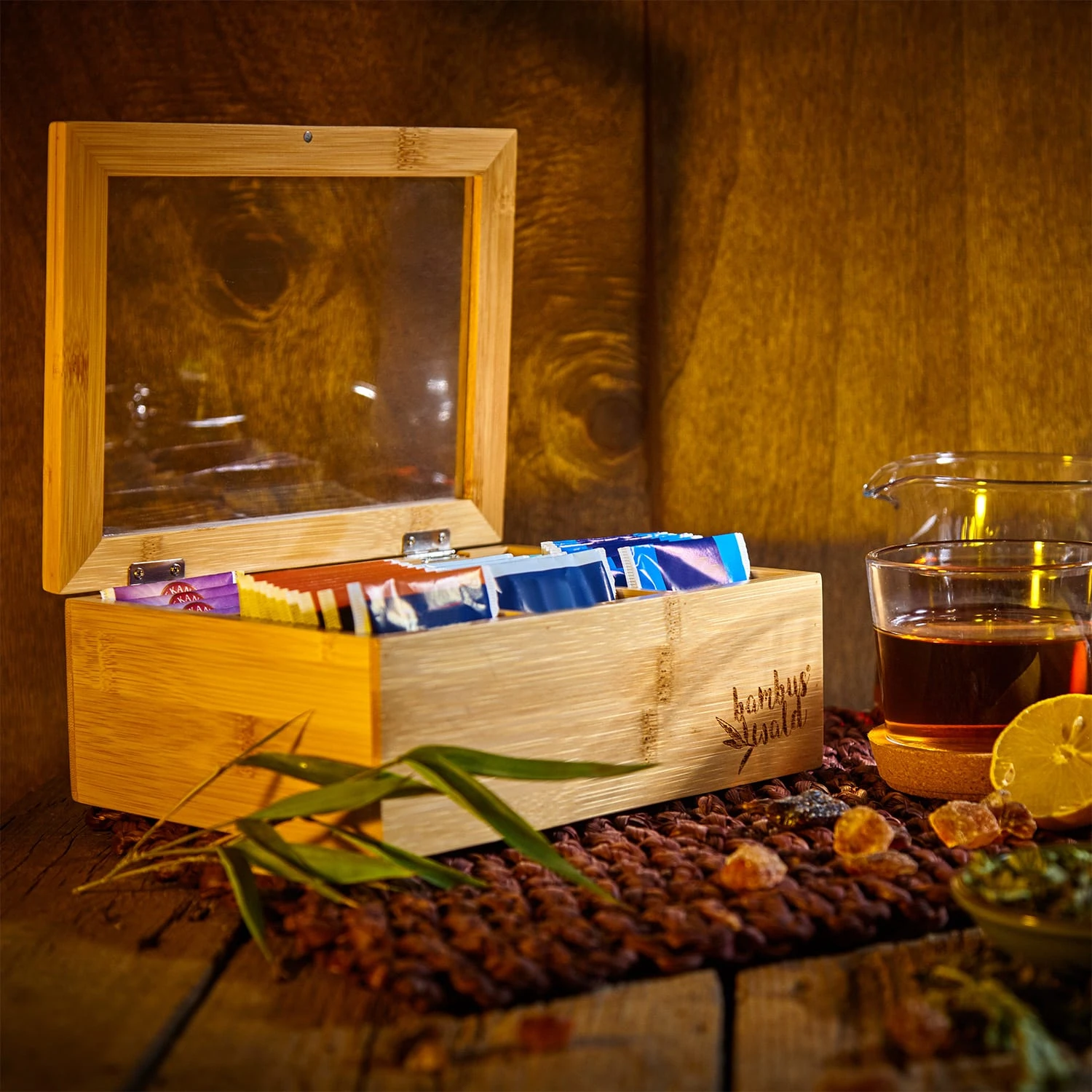 Adori l’incredibile varietà del tè? Con il contenitore per tè di Klarstein porterai ordine nella tua collezione e potrai metterla in risalto con eleganza. Nei singoli scomparti puoi organizzare i tuoi tè in base alla tipologia, conservarli e proteggerne a lungo tutti fantastici aromi. Così potrai presentare i tuoi tè in grande stile e facilitare la scelta. Stupendo per la cucina, per il buffet della colazione, per il soggiorno, ma anche presso ristoranti, sale da tè, camere di hotel o aree reception, la scatola per il tè è un accessorio pratico e bellissimo.
