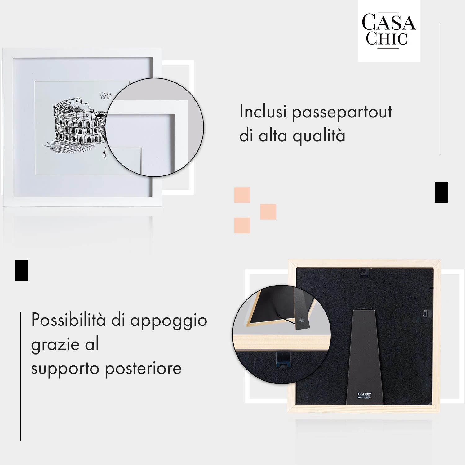 Le cornici Everton di Casa Chic by blumfeldt sono realizzate in legno e valorizzano le tue foto e immagini indipendentemente dal loro posizionamento verticale o orizzontale. Decora le pareti come preferisci, creando dei fantastici collage oppure disponi le tue foto più amate sul comodino o su uno scaffale. Il passepartout incluso ti permetterà di scegliere il formato ideale per la tua foto. La semplicità del profilo della cornice e la lastra frontale in vero vetro offrono eleganza e il massimo della protezione.