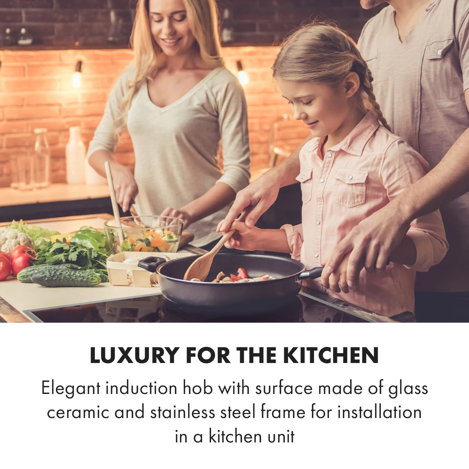 Dal punto di vista estetico, il piano cottura a induzione Delicatessa 60 Hybrid Prime di Klarstein convince con la superficie in vetroceramica di facile cura con telaio in acciaio inox, che mette in risalto il dispositivo. Il piano cottura può essere integrato facilmente in ogni cucina, che sia classica o moderna. Il materiale necessario per l’incasso nel piano di lavoro è incluso in consegna.
