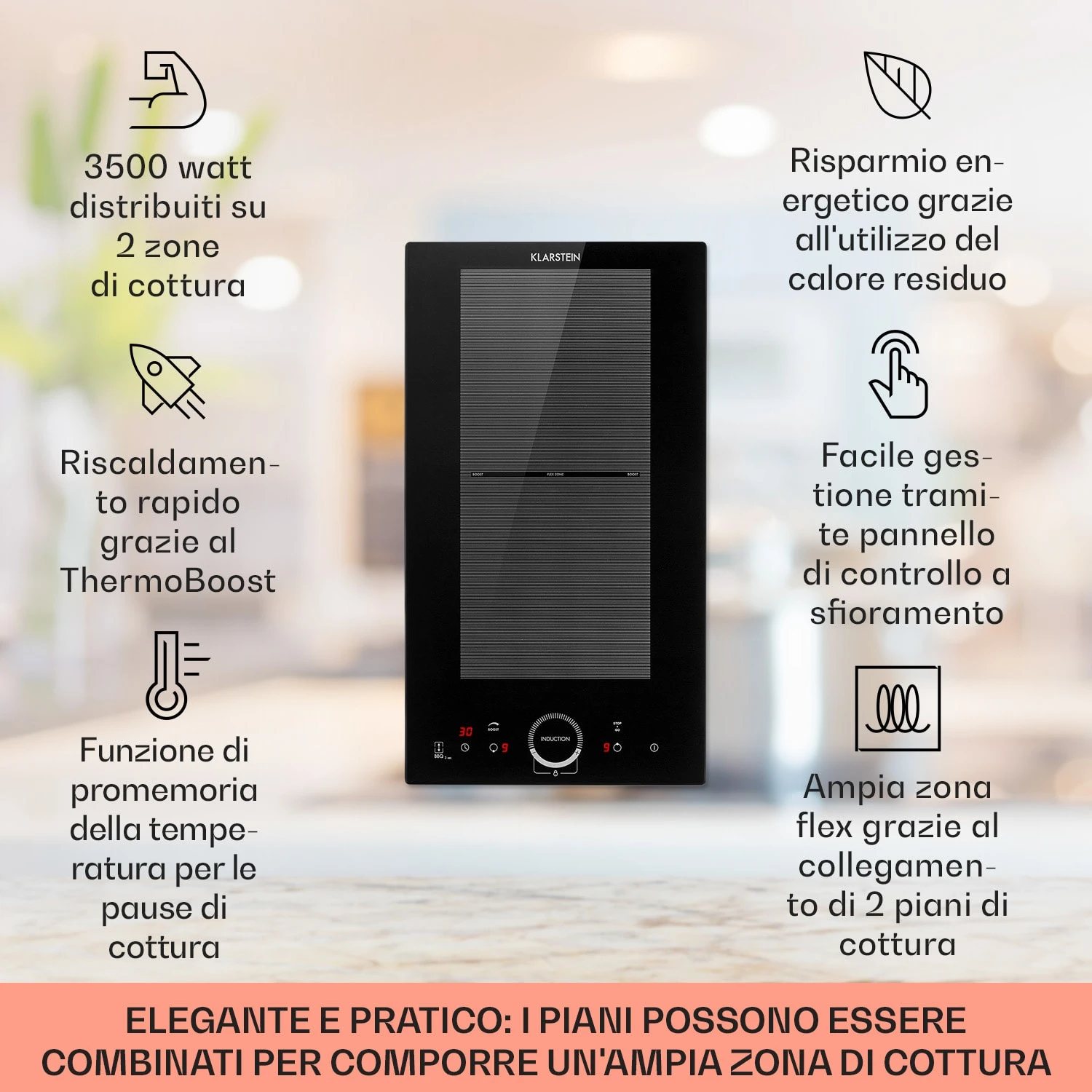 Cucinare in modo flessibile: il piano cottura a induzione Delicatessa Slim di Klarstein garantisce un utilizzo dello spazio ottimale con un consumo di energia minimo durante la cottura. Esso coniuga l’innovazione tecnica con l’aspetto lussuoso e grazie alla sua superficie in vetroceramica porta nuovo splendore nelle cucinine.