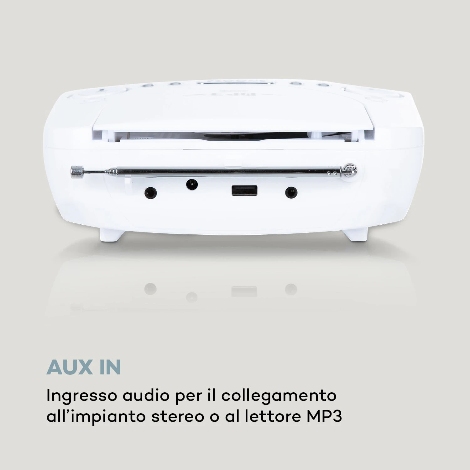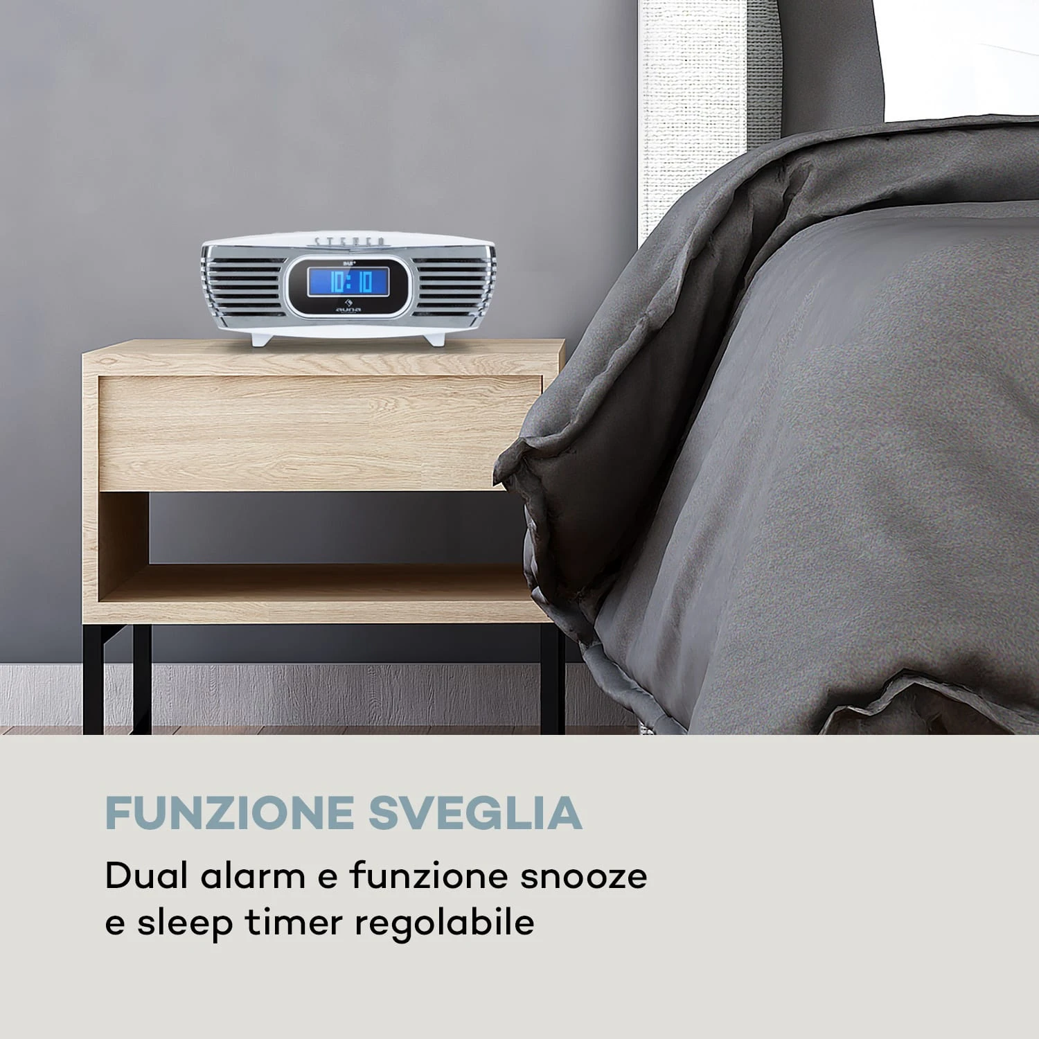 Per un vero primato musicale. Il display LCD intuitivo e illuminato mostra non solo la frequenza del trasmettitore impostata ma anche l’ora del giorno facilmente leggibile. Particolarmente utili sono le ampie funzioni di allarme tra cui doppio allarme regolabile e funzione snooze. Il segnale di sveglia proviene dalla stazione radio impostata, dal CD inserito o da un segnale acustico. Un timer di sonno regolabile consente sonnolenza musicale. Una porta di ricarica USB posteriore rappresenta una pratica fonte di alimentazione per smartphone, lettori o tablet in modo che tornino a piena potenza la mattina successiva.