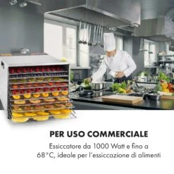 Captain Jerky 110, Essiccatore, 1000W, 30-90 °C, Timer 24 Ore, Acciaio Inox