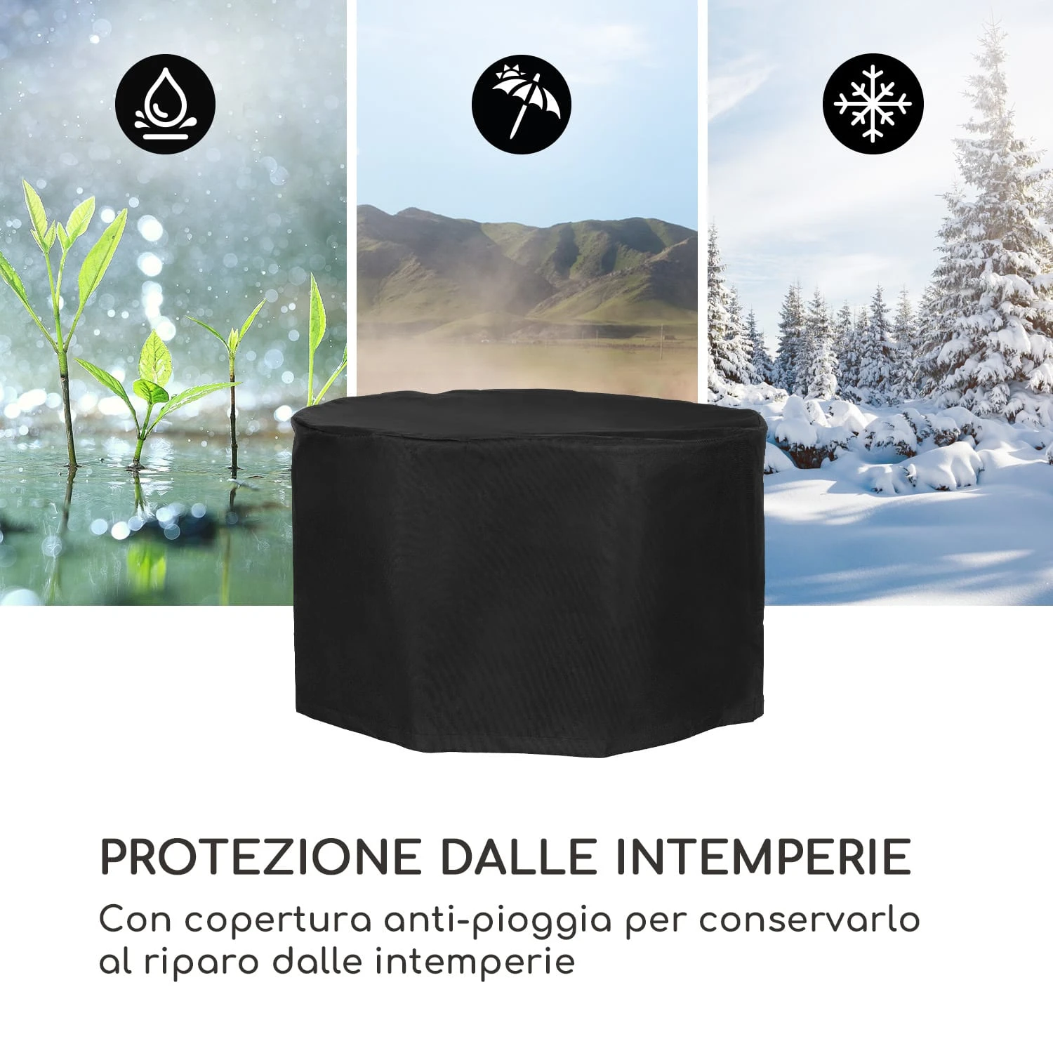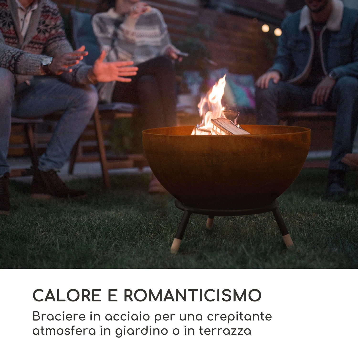 Fireball Rust di blumfeldt è un vero spettacolo anche quando è spento. Il braciere e la base d’appoggio sono di alta qualità e presentano una lavorazione curata. Con la sua parete in acciaio spessa 3 mm, Fireball Rust risulta estremamente robusto. I tre piedi d’appoggio evitano che si rovesci e garantiscono la massima stabilità in giardino o terrazza. La copertura inclusa in consegna protegge il vostro braciere preferito da pioggia e vento. Il suo design e la griglia per la cenere assicurano una combustione pulita e sicura. Se carbonella o ceppi di legno dovessero iniziare a perdere intensità, basta smuoverli con l’attizzatoio in dotazione e torneranno a divampare.