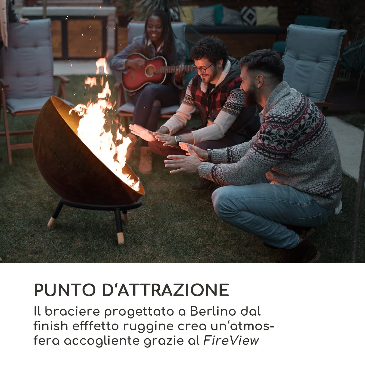 Il clou di Fireball Rust sono le diverse possibilità di utilizzo: posizionandolo in orizzontale, potete utilizzarlo come un tradizionale braciere per il giardino, mentre orientando la semisfera in diagonale potete godervi in terrazza il fantastico gioco di fiamme del vostro nuovo caminetto. Indipendentemente dalla funzione che preferite, il design iconico di Fireball Rust di blumfeldt dona alla vostra casa un’accogliente sensazione di relax e romanticismo. Il braciere e le fiamme danzanti vi permettono di ritrovare la pace dopo una giornata impegnativa. Inoltre, utilizzando la semisfera in posizione diagonale, il fuoco è riparato dal vento e potrete godervi al meglio il gradevole tepore.