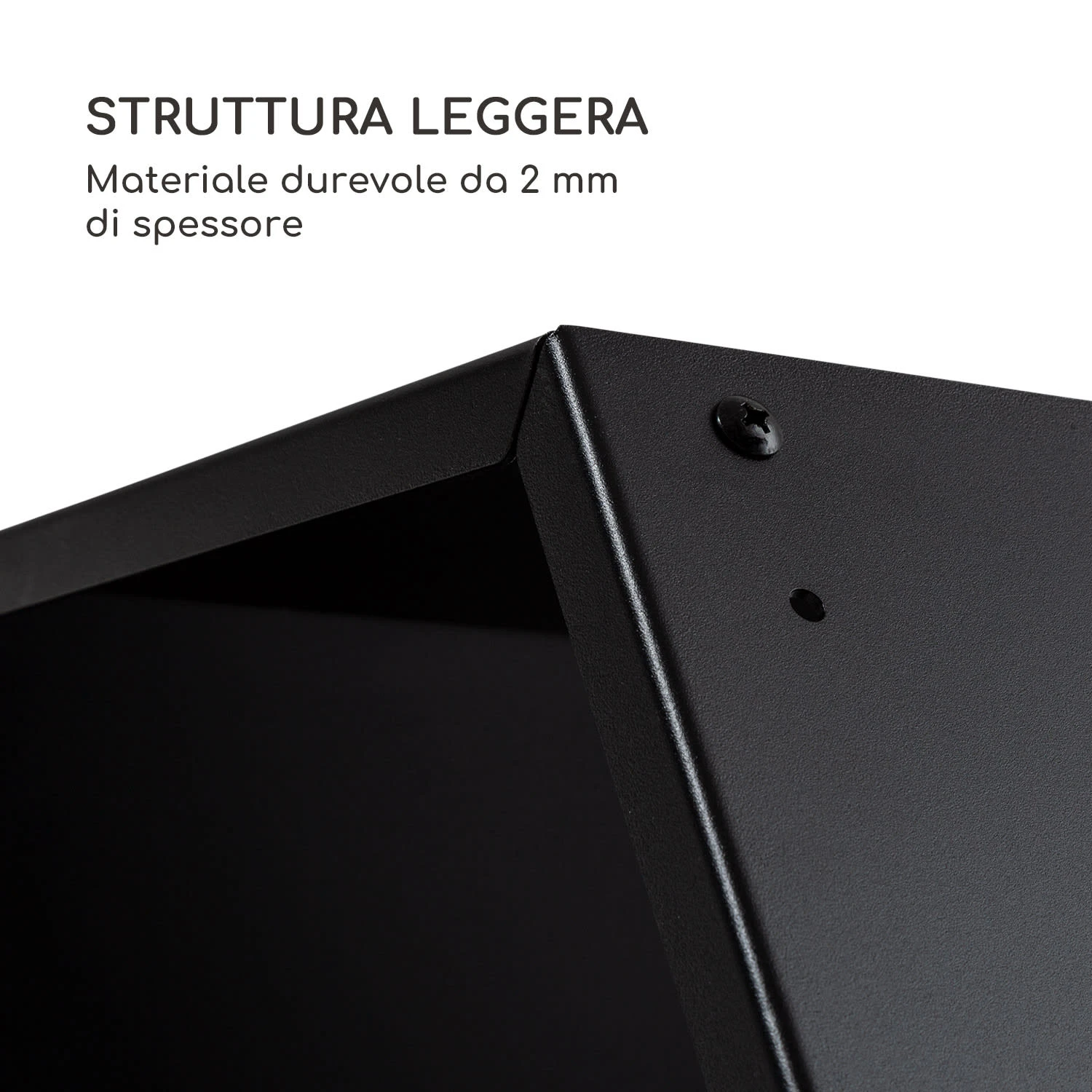 Chi non si siede volentieri davanti a un fuoco scoppiettante e che riscalda? Con la Firebowl Hexawood Black di Blumfeldt ti puoi comodamente rilassare: i tronchetti di legno sono subito a portata di mano per alimentare il fuoco. La legnaia consente di avere non solo un luogo di stoccaggio moderno e salvaspazio, ma è anche allo stesso tempo una moderna delizia per gli occhi, grazie alla sua forma esagonale. Inoltre colpisce con il suo magnifico design puristico. La sua visione rustica, ma moderna si completa solo quando accatasti i tronchetti di legno all’interno, perché il legno armonizza perfettamente con l’acciaio.