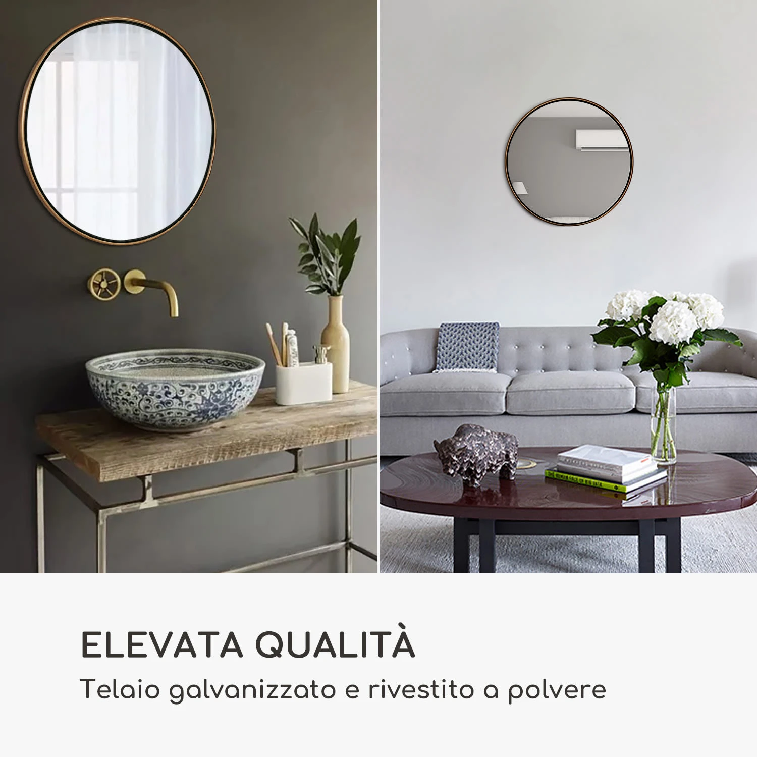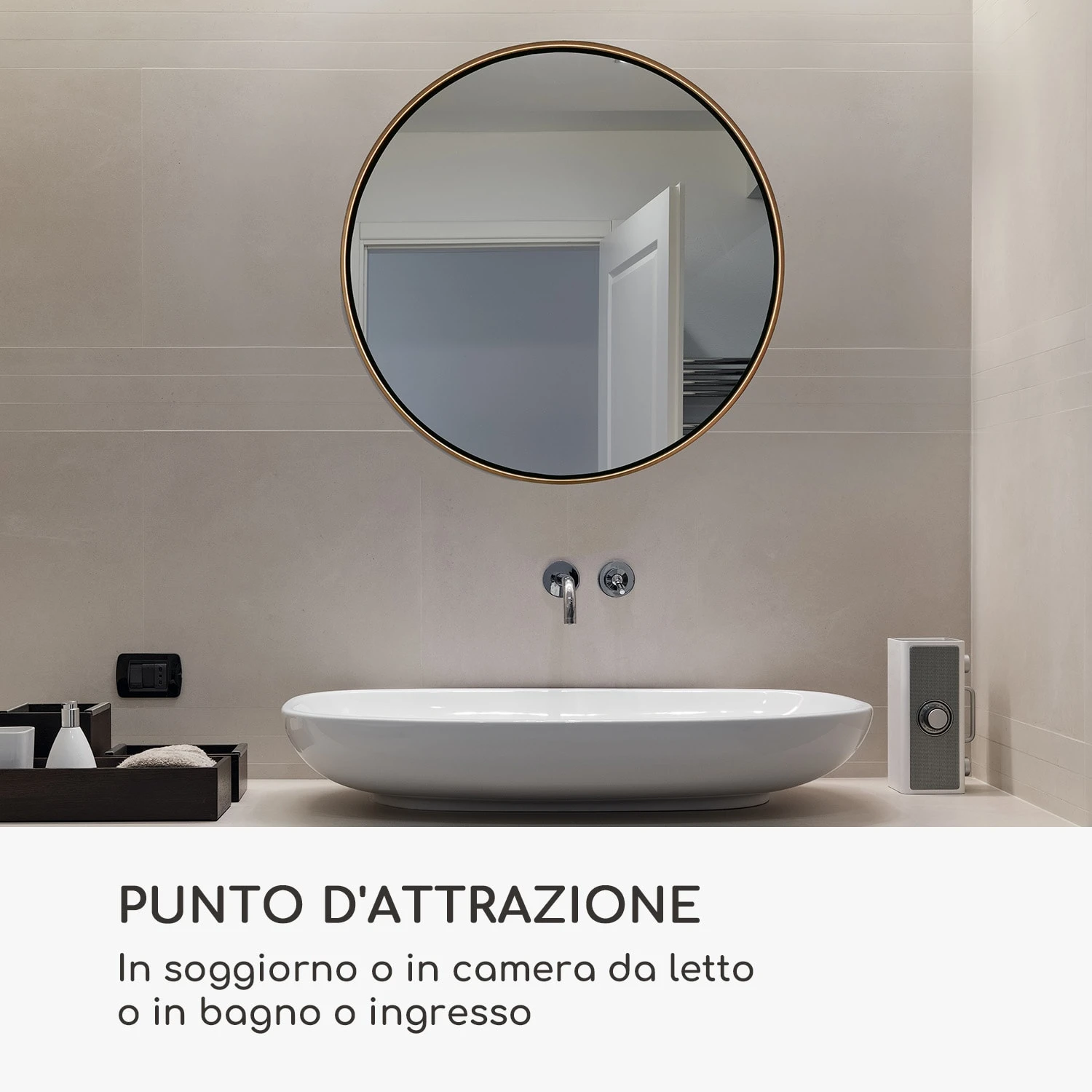 Lo specchio da parete Fournier di Casa Chic by blumfeldt con l’elegante cornice in metallo arricchirà qualsiasi stanza. Brilla come elemento decorativo in soggiorno, nella zona d’ingresso, in camera da letto e in bagno. La cornice è galvanizzata e verniciata a polvere, quindi può tranquillamente essere appesa in aree umide. Montato alla parete, il suo design rotondo e senza tempo cattura davvero lo sguardo.