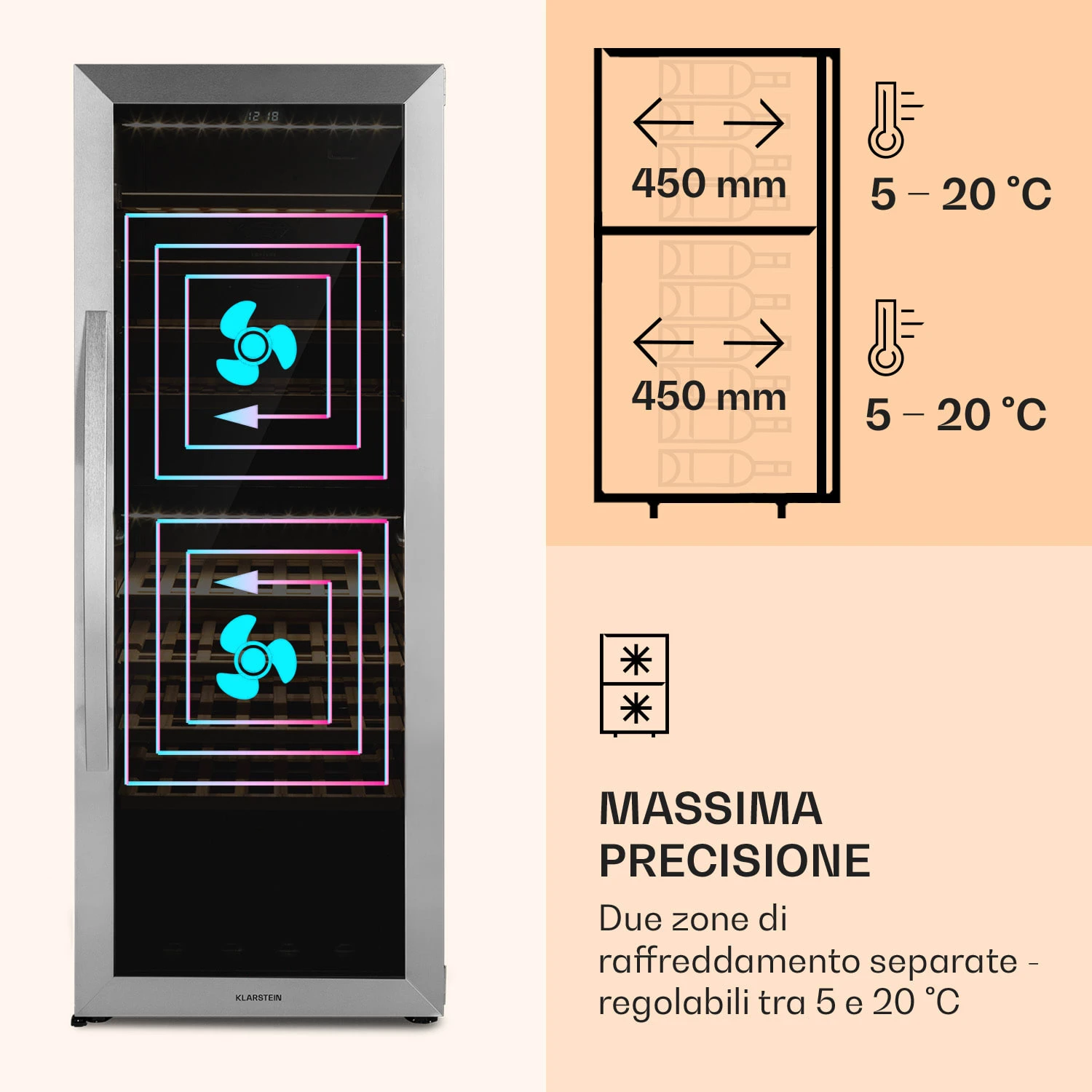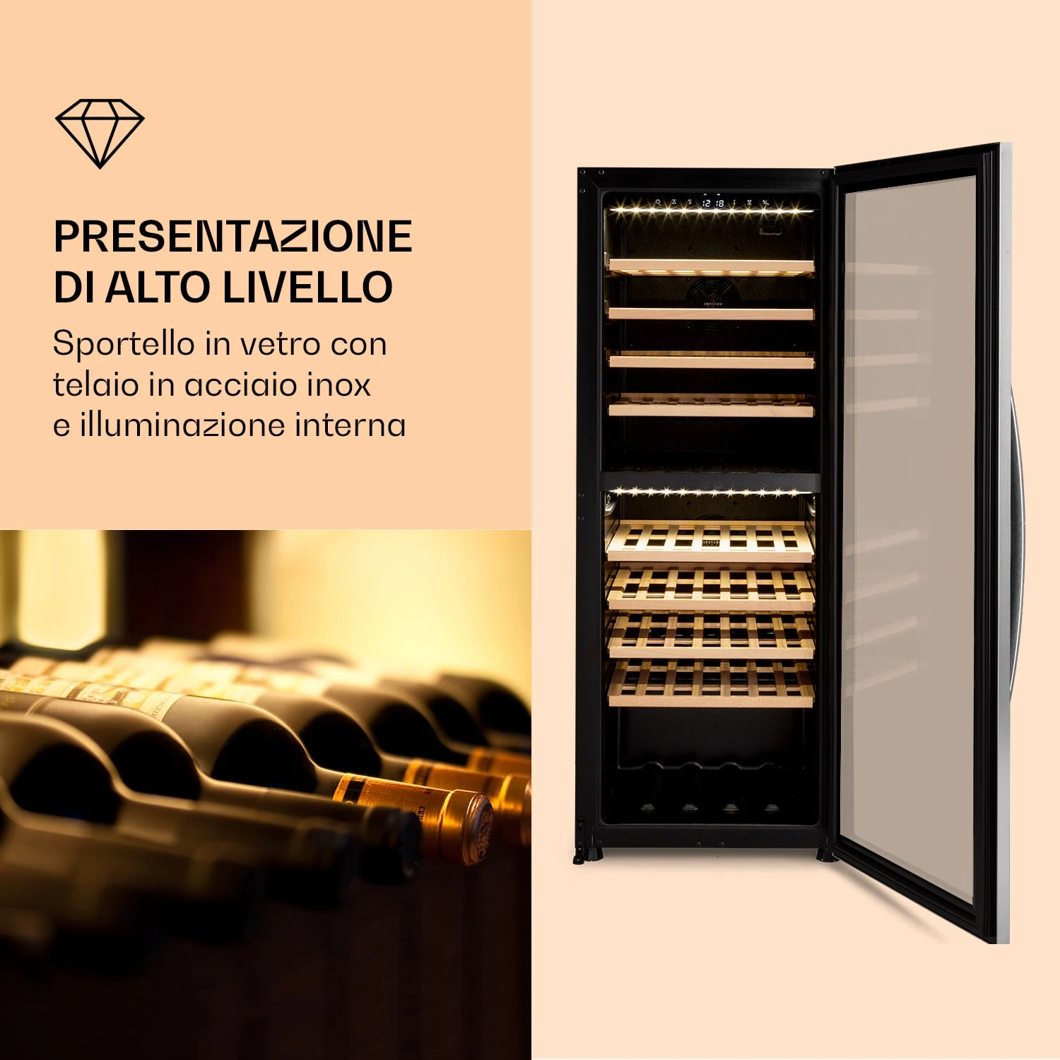 Il frigorifero-cantinetta Vinamour 77 Duo di Klarstein trasforma il piacere del buon vino.