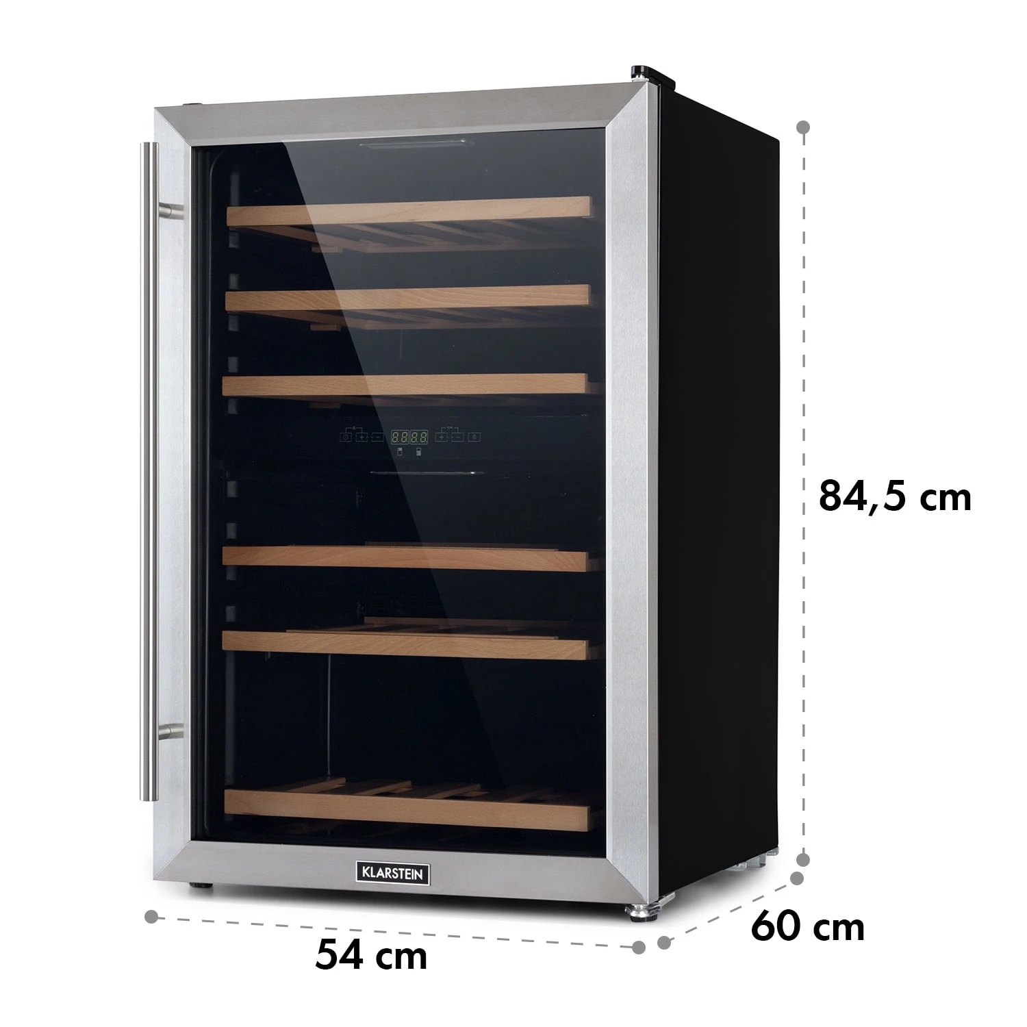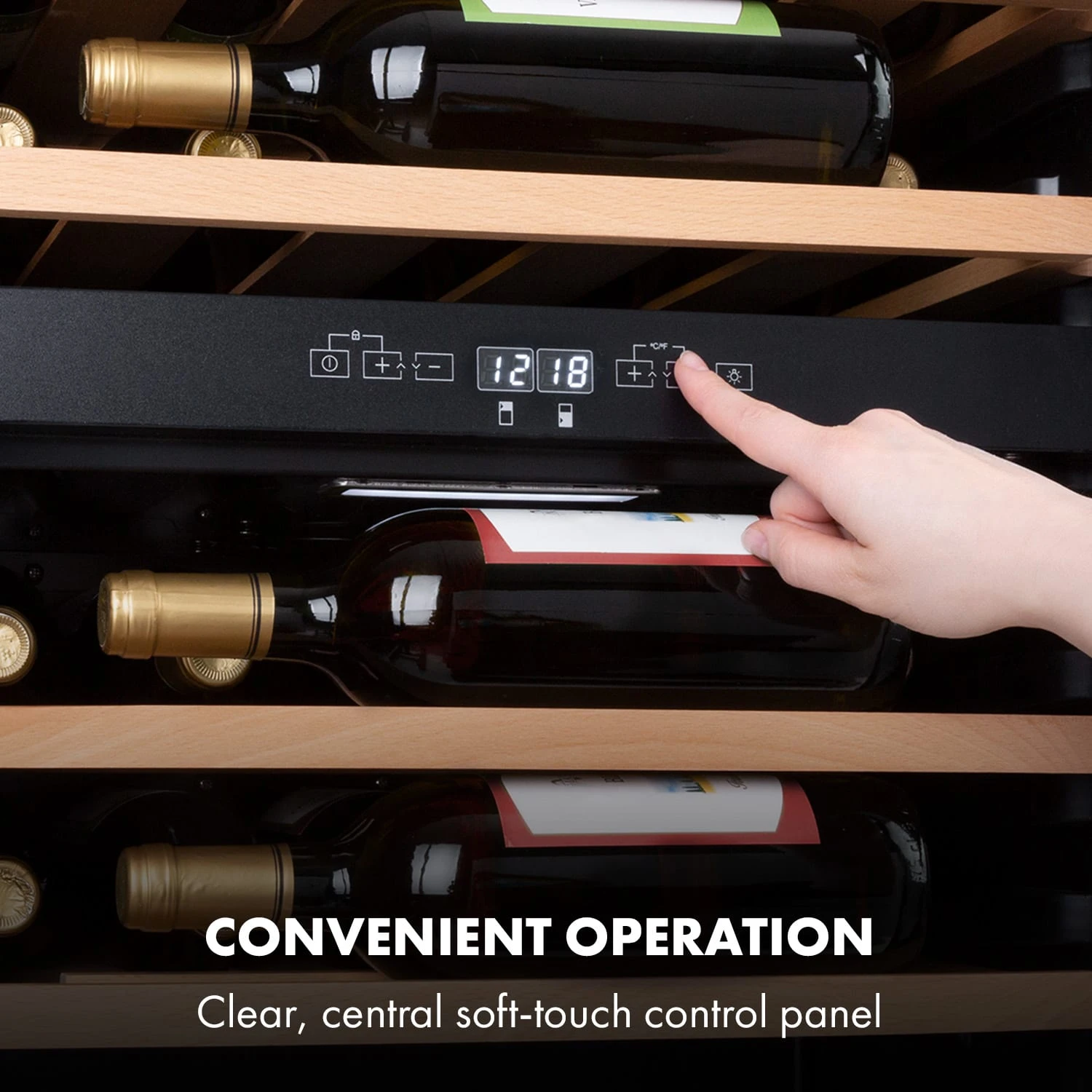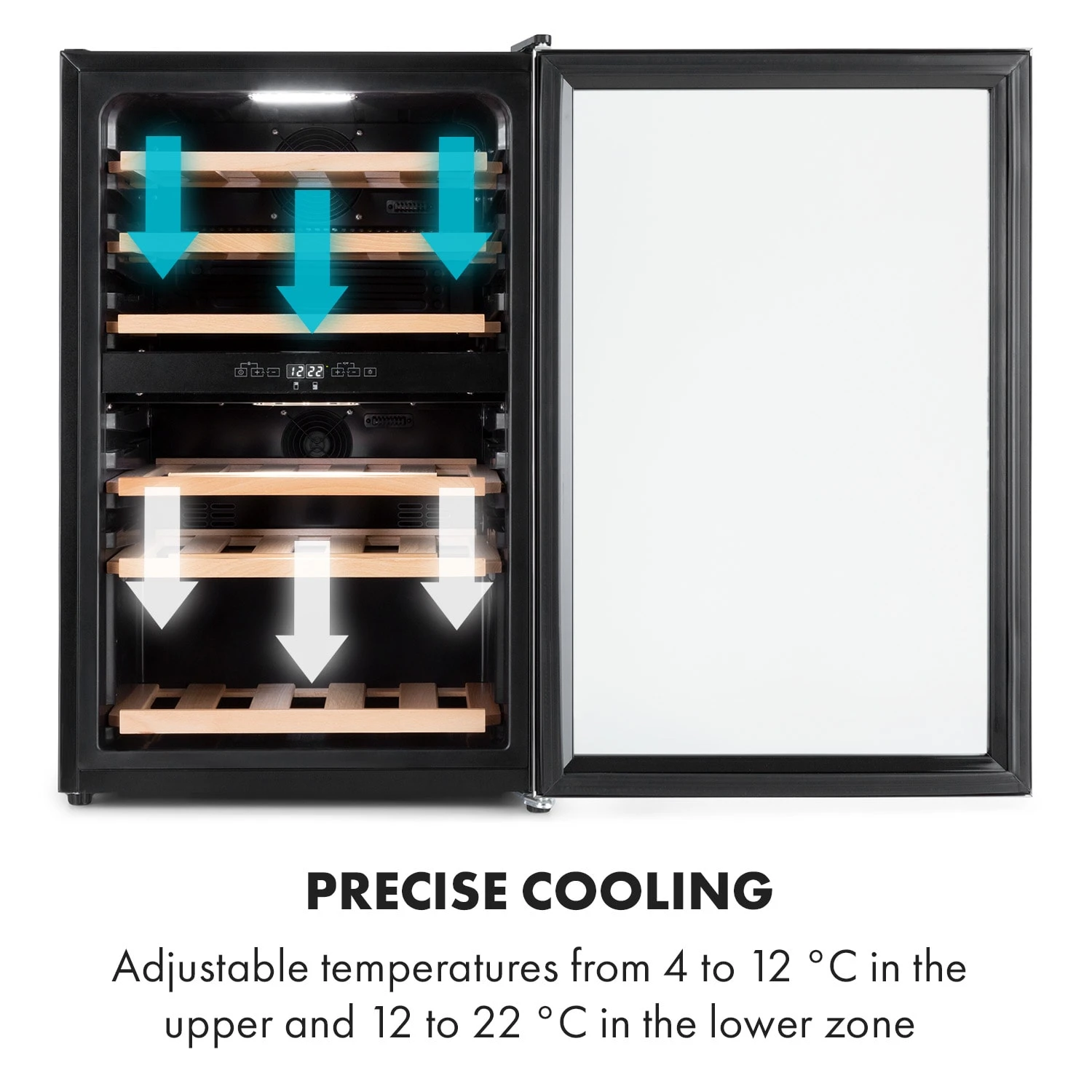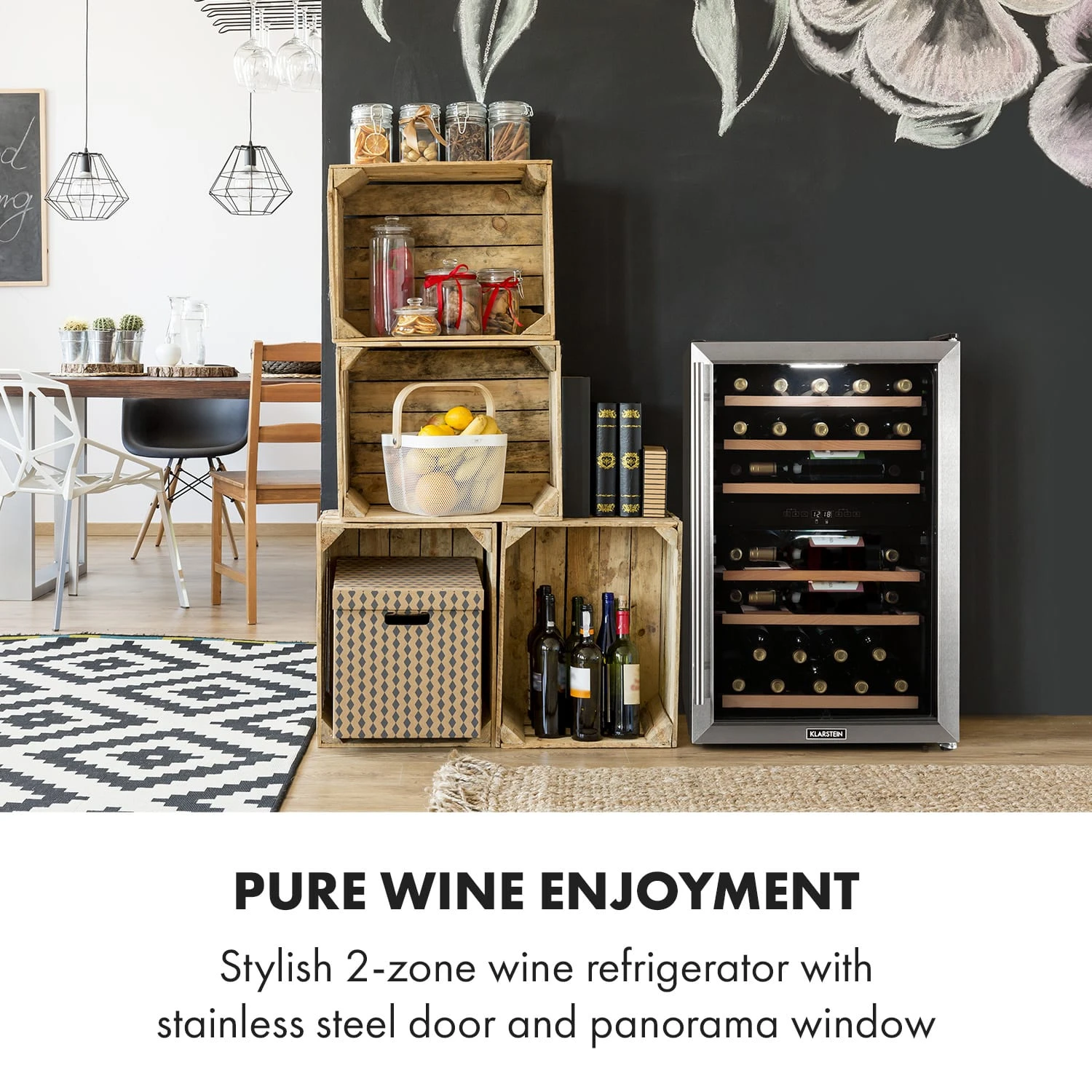 Conservazione del vino ad alto livello: il frigorifero da vino Vinamour 37 Duo di Klarstein presenta con stile le vostre scorte di vino e dà ai vini pregiati la perfetta temperatura di consumo.