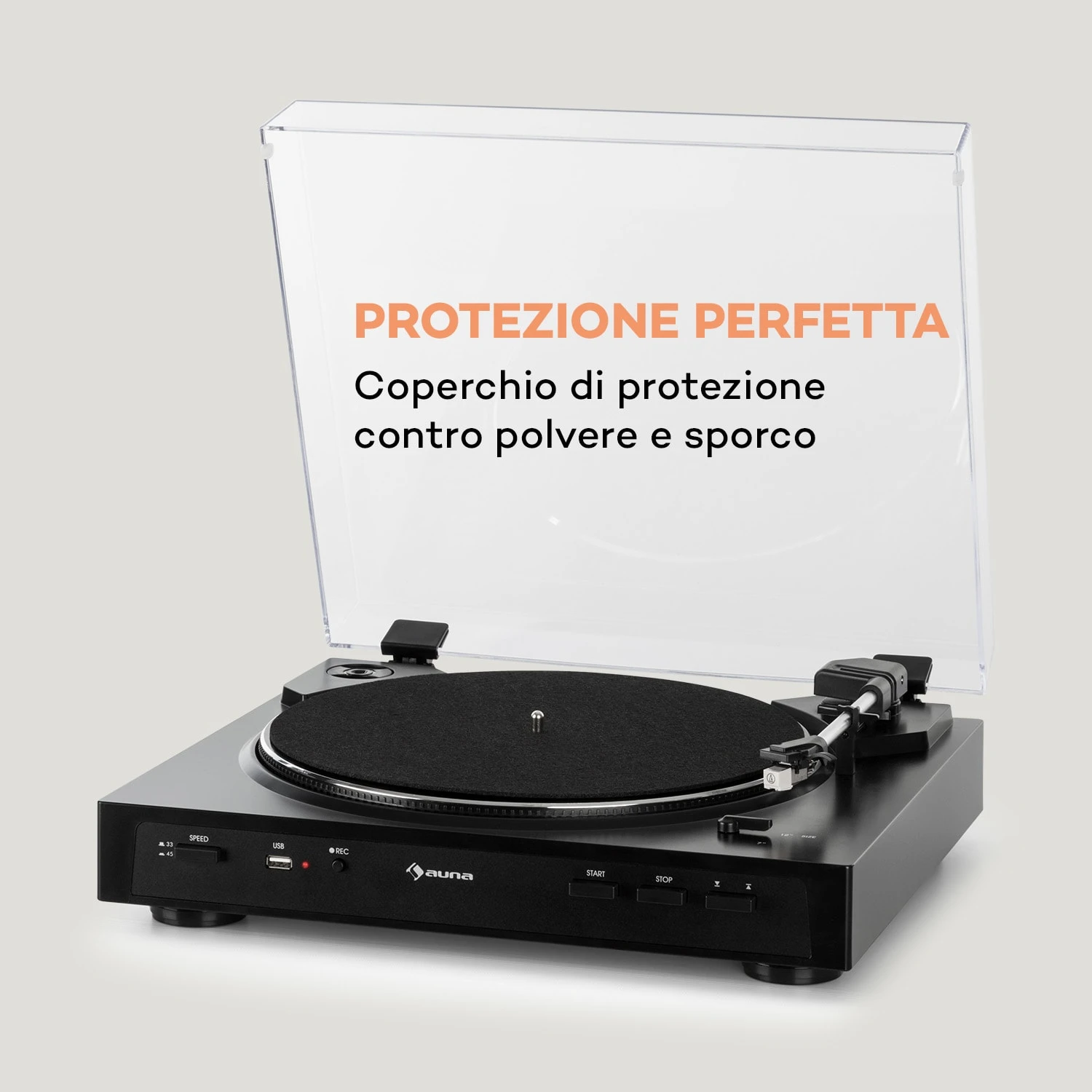 Eleganza pura per un piacevole suono vinilico: il giradischi auna Fullmatic fa andare avanti vecchi e nuovi dischi e colpisce per il suo design semplice.