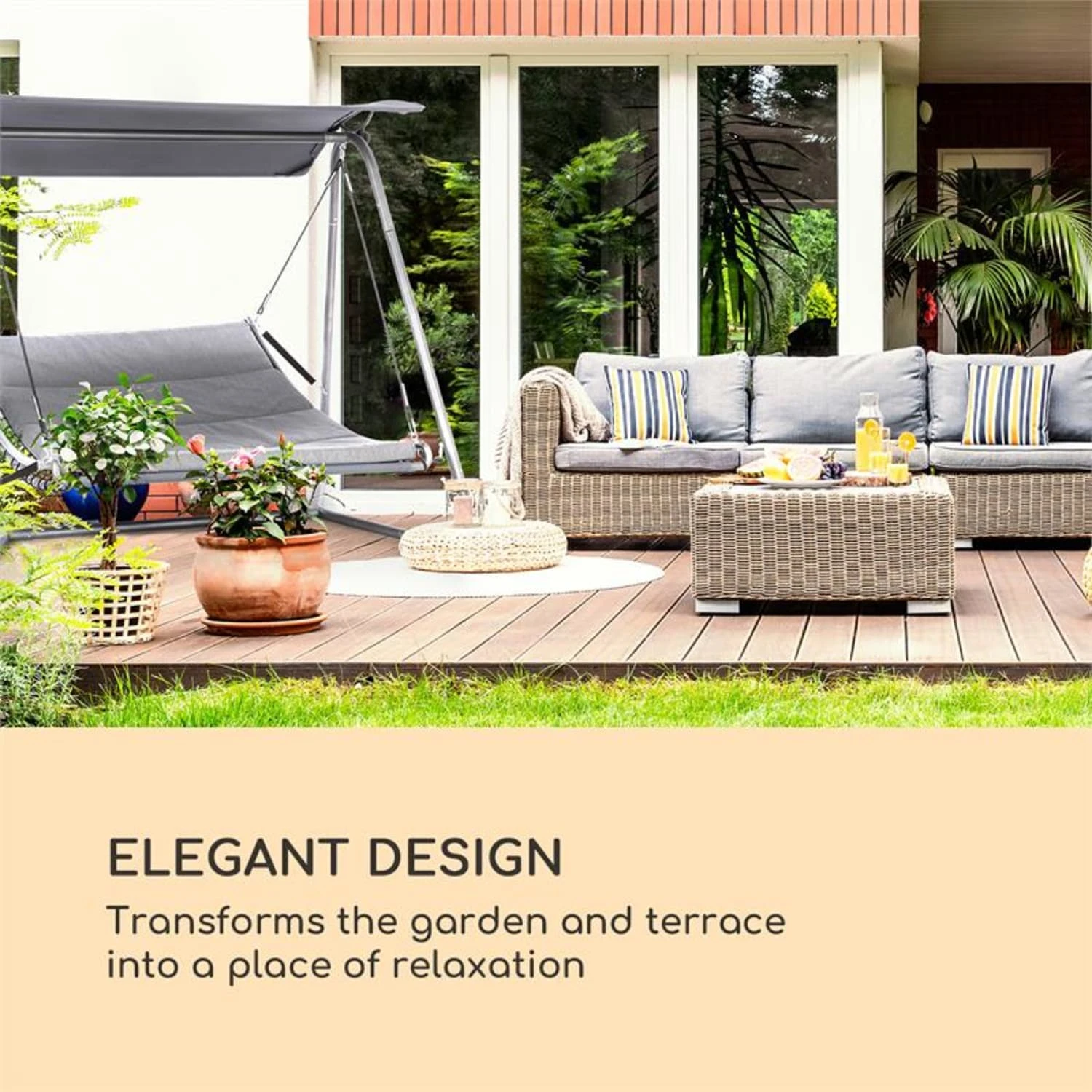 Godetevi momenti di leggerezza e relax con la sdraio a dondolo Garden Grove di Blumfeldt.