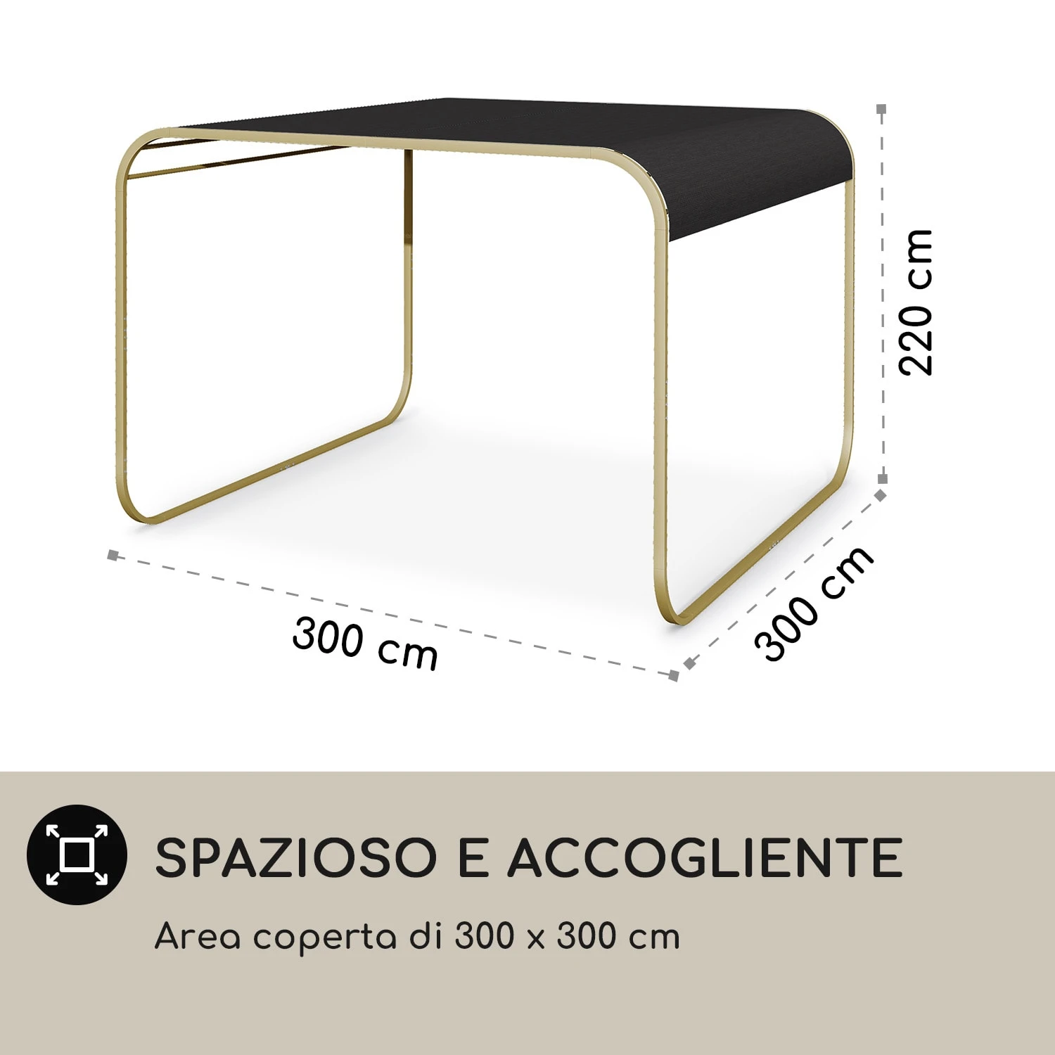 Pioggia o sole: sotto il padiglione da giardino Orleans di blumfeldt potrai rilassarti all’aperto in ogni condizione atmosferica, godendoti il massimo del comfort. Il telaio leggero in acciaio inox rende il tuo nuovo padiglione molto flessibile permettendone l’installazione in giardino, sul patio o nel cortile, e può essere fissato direttamente al suolo. La semplicità della costruzione non lascia indifferenti perché la pergola potrà essere montata seguendo pochi passaggi. Perfetta in caso di vento, offre una buona protezione dal sole o dalla pioggia. Il tetto è stato progettato in modo particolarmente intelligente ed è costituito da due elementi resistenti che si possono far scorrere sui lati. In questo modo il tetto si trasforma quasi magicamente in due pratiche pareti laterali, o in una parete laterale con mezzo tetto, a tua scelta. Questo ha anche il vantaggio di evitare che l’acqua si accumuli sul tetto in caso di pioggia per godere più a lungo del lussuoso gazebo.