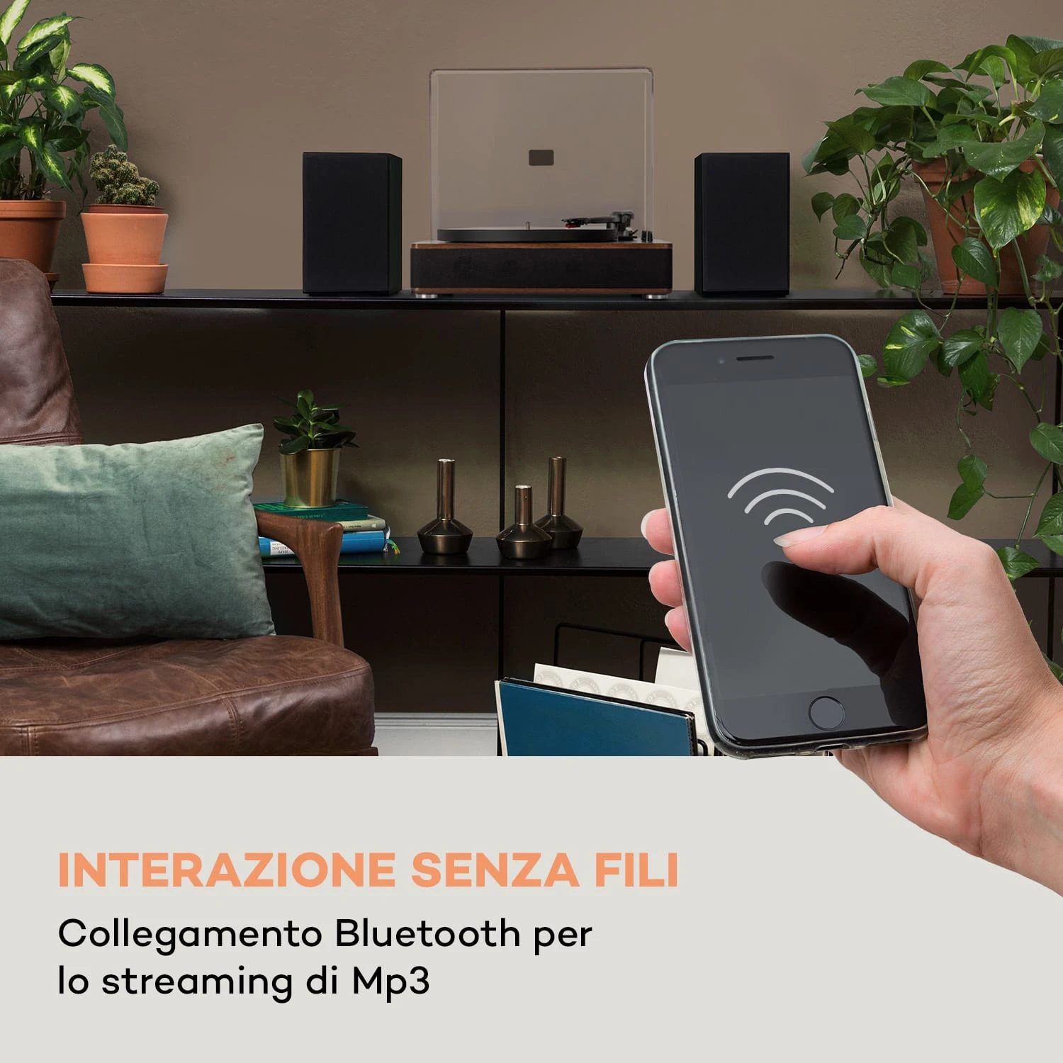 Ridotto all’essenziale, il giradischi TT-Classic Plus di auna convince per il suo funzionamento semplice e i suoi componenti moderni. La sua silenziosa trasmissione a cinghia funziona ad una frequenza di 33, 45 o 78 giri al minuto ed è adatta a tutti i dischi standard. Gli altoparlanti stereo integrati garantiscono il piacere dell’ascolto senza dispositivi aggiuntivi. Inoltre, è anche possibile collegare il giradischi senza fili ad altri altoparlanti o supporti audio via Bluetooth. Anche un’uscita RCA e un ingresso AUX per jack da 3,5 mm sono presenti sul retro per integrare il TT-Classic Plus in un complesso Hi-Fi più articolato.
