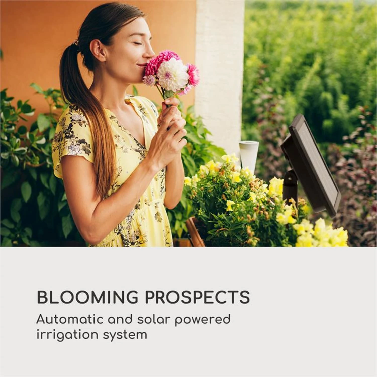 Per un balcone fiorito anche al ritorno dalle vacanze: da oggi è possibile con l’impianto d’irrigazione Greenkeeper Solar di Blumfeldt. Il vostro intelligentissimo supplente durante le ferie si prende cura di un massimo di 40 piante da vaso o da giardino e le irriga in modo totalmente automatico, grazie al dispositivo di controllo. Il set viene alimentato da un pannello solare e non necessita di ulteriore alimentazione. In questo modo può essere utilizzato tanto in giardino, quanto in grandi campi aperti, l0importante è che sia sempre disponibile una fonte d’acqua, come ad es. un serbatoio per il recupero dell’acqua piovana. Il dispositivo è dunque un’alternativa ecologica, flessibile e a bassi consumi ai tradizionali impianti a cavo.
