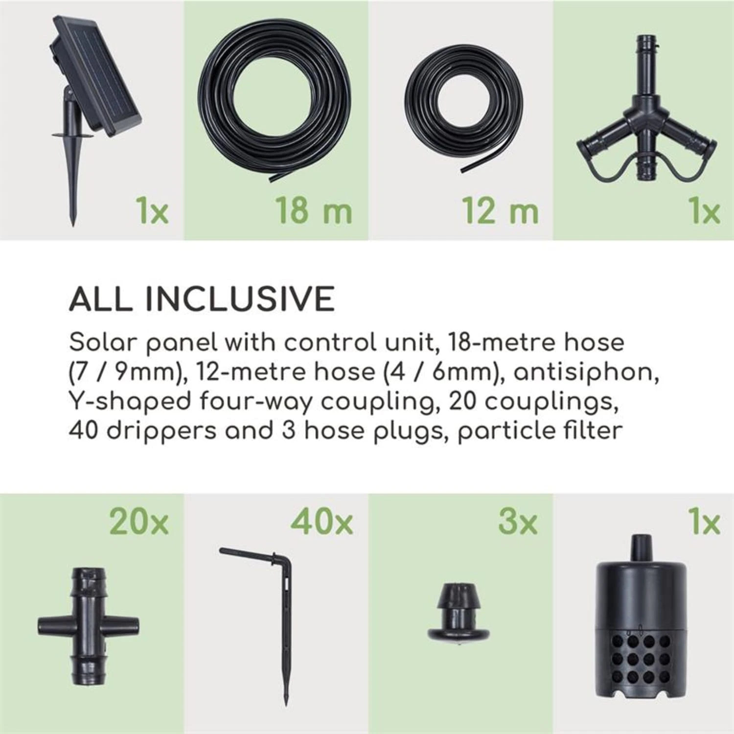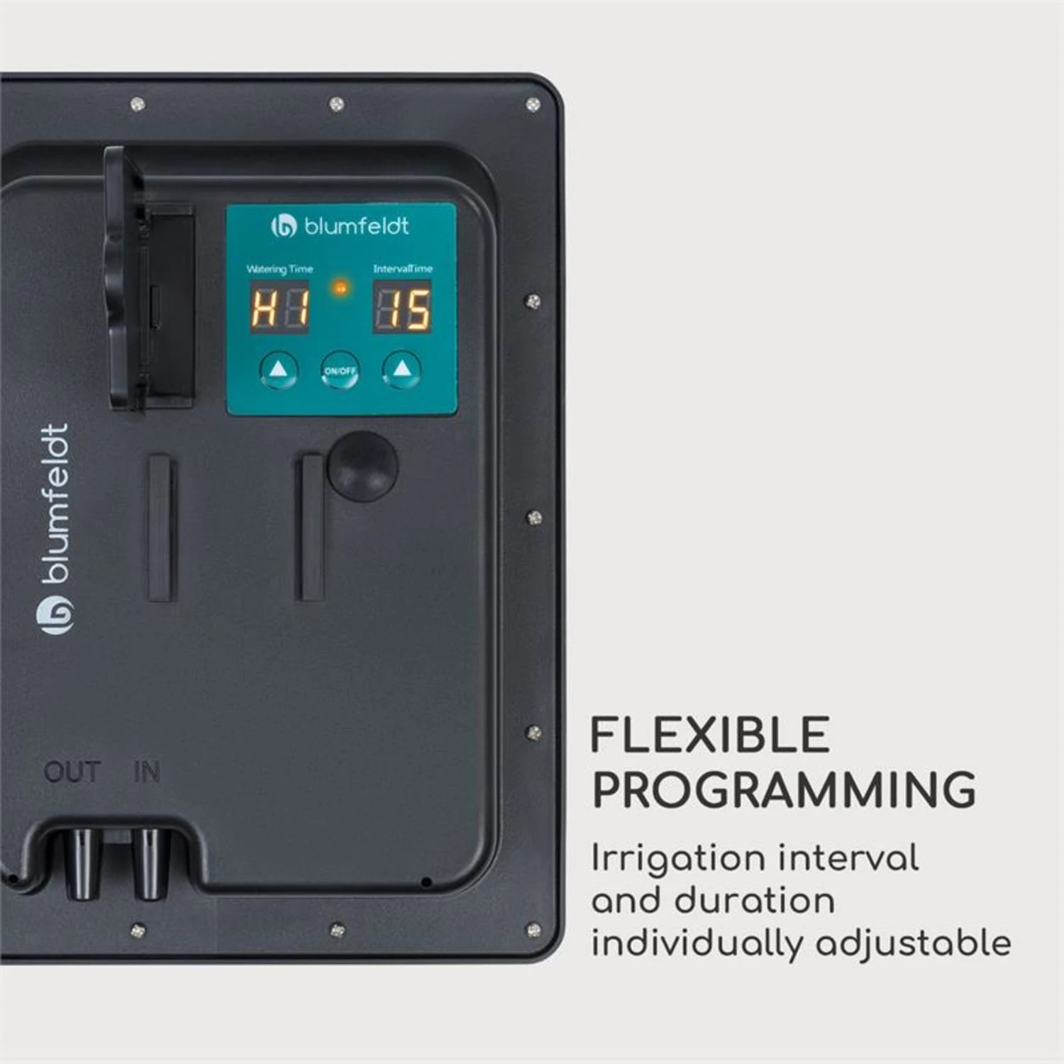 Il ricco kit d’irrigazione di Blumfeldt con due tubi di diverso spessore, 20 connettori e 40 gocciolatori permette di convogliare l’acqua in modo mirato, con una velocità di flusso di 2 l/minuto. Un antisifone impedisce il flusso di ritorno dell’acqua. Le numerose possibilità di impostazione e il metodo d’irrigazione controllato assicurano che neanche una goccia vada persa.