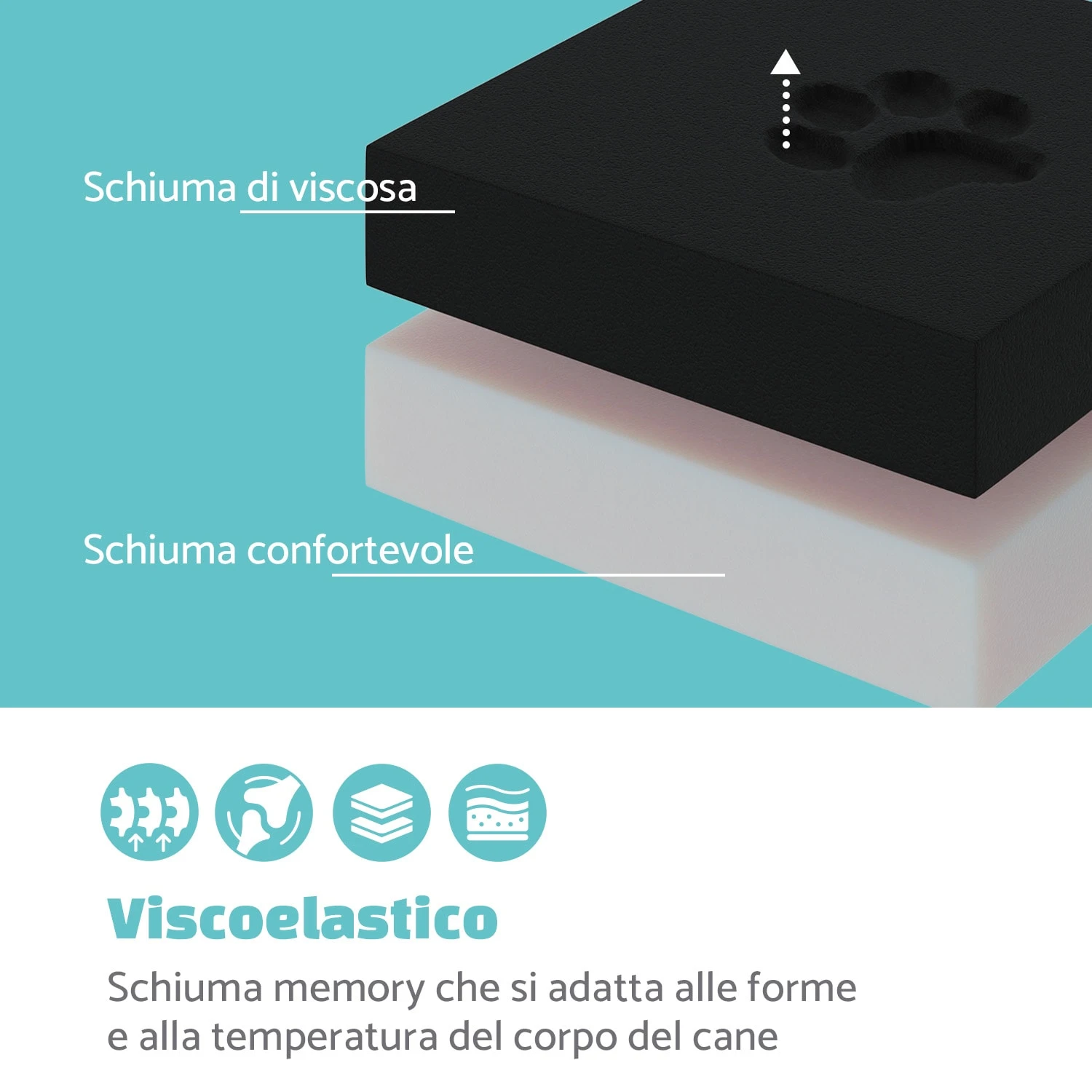 La schiuma viscoelastica, nota anche come memory foam, presenta caratteristiche uniche: si adatta perfettamente ai contorni del corpo del vostro cane, dato che la schiuma reagisce alla pressione e alla temperatura corporea. In questo modo il cane potrà stendersi in maniera ortopedicamente corretta, senza il rischio di problemi circolatori.