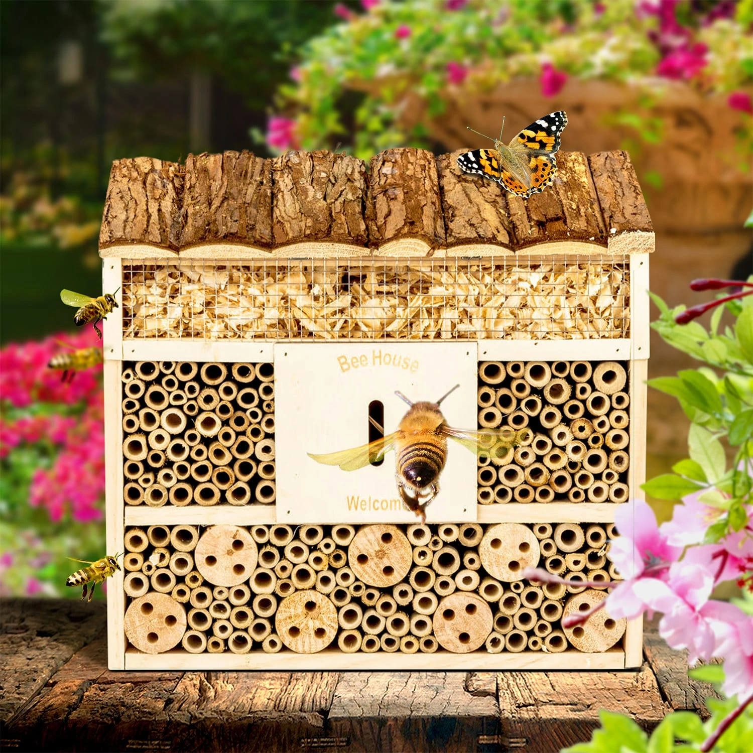 Grazie ai tubicini di bambù, le api si sentono particolarmente a loro agio nell’hotel per insetti. Nei diversi scomparti, anche vespe, api, coccinelle, forbicine, crisopidi e altri insetti faranno volentieri il loro nido. L’hotel per insetti è inoltre una fantastica decorazione in giardino e permette a famiglie, bambini appassionati di giardinaggio e amici della natura di osservare l’interessante via vai di nuovi ospiti.