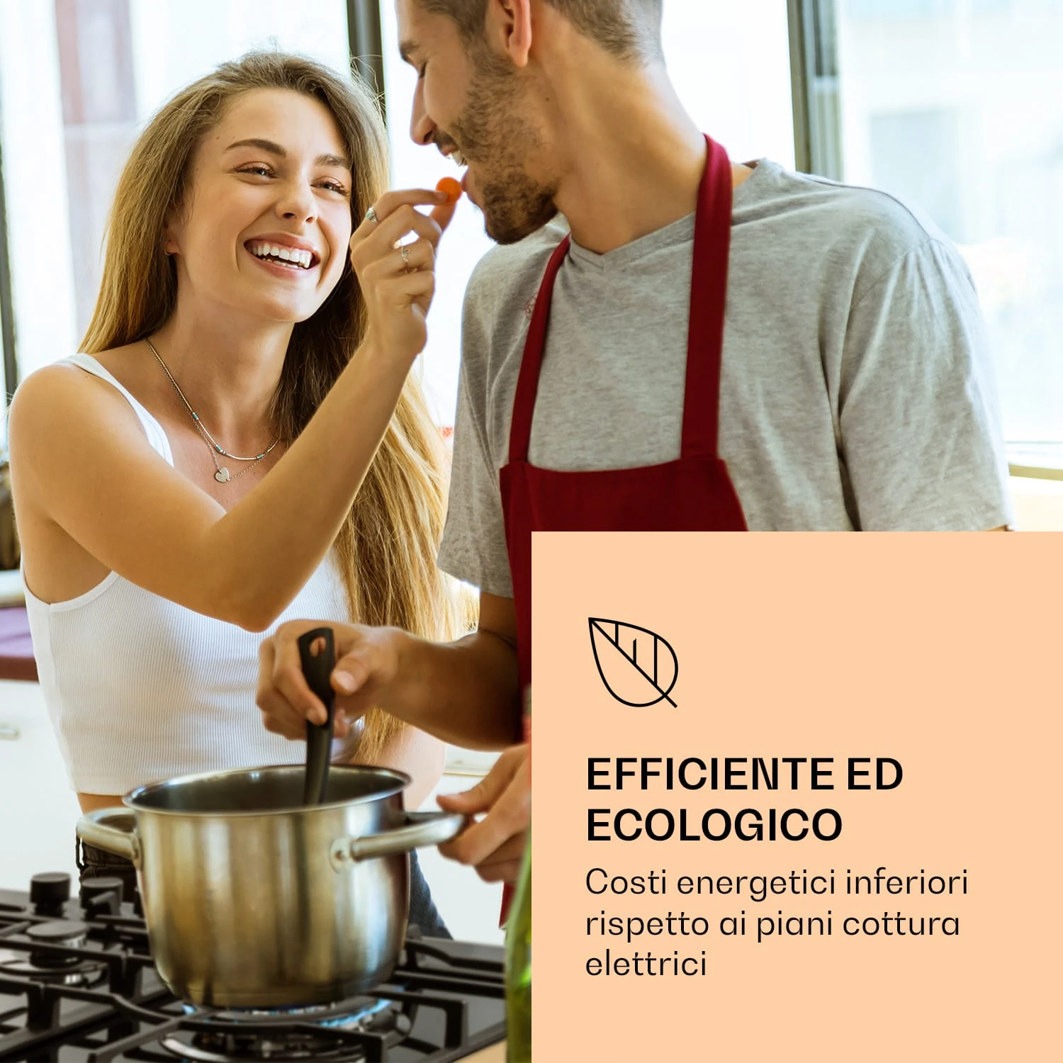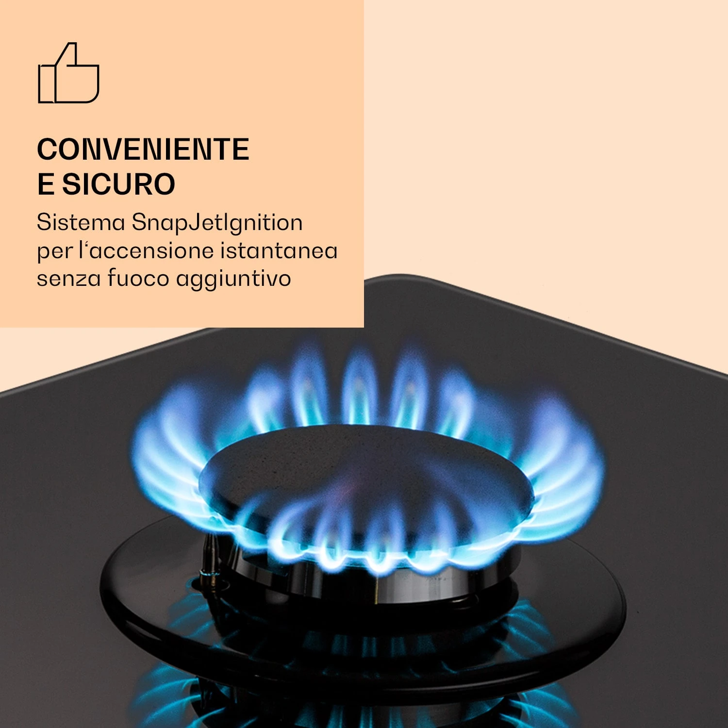 5 fuochi per la massima versatilità in cucina: con lo spazioso piano cottura a gas a 5 zone Ignito Chef Edition di Klarstein hai a disposizione cinque bruciatori Sabaf di alta qualità, che riscaldano a dovere con una potenza di 3,6 kW, 3,0 kW, 1 kW e due da 1,75 kW. Le diverse dimensioni dei bruciatori rendono il piano cottura perfetto per un sacco di prelibatezze diverse. La gestione è assolutamente intuitiva grazie ai chiari simboli sulle grandi manopole: il flusso di calore può essere regolato in ogni momento durante la cottura e le fiamme vengono accese semplicemente con il sistema SnapJetIgnition-System, senza bisogno di fuoco aggiuntivo. I bruciatori distribuiscono il calore uniformemente al centro e sui bordi di pentole o padelle, per risultati di cottura omogenei. Le tre griglie in ghisa rimovibili sono adatte a quasi tutti i tipi di pentole e sono posizionate perfettamente e saldamente sulle fiamme. L’attacco ad anello aggiuntivo è perfetto quanto vuoi utilizzare una padella wok.