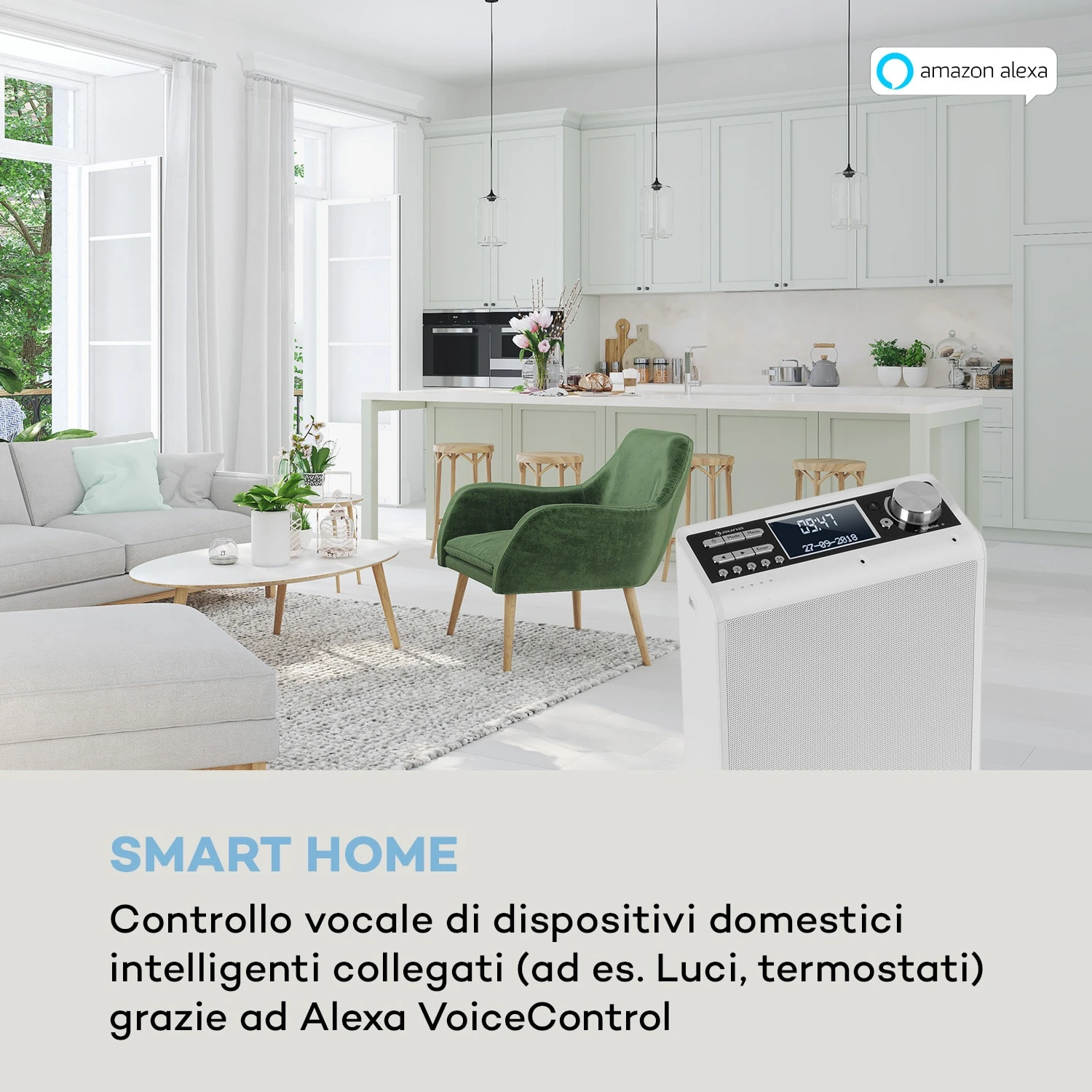 Inoltre la radio da cucina Intelligence DAB+ di auna è il vostro dispositivo SmartDevice per la casa: non c’è bisogno di premere tasti, perché l’Alexa VoiceControl consente di effettuare operazioni tramite comando vocale: Alexa riproduce la musica! Ad esempio, da uno dei tanti servizi di streaming audio a cui l’Intelligence Plug può fare riferimento tramite Wireless: Amazon Music, audible, Pandora, TuneIn, ecc, possono essere utilizzati senza muovere un dito. Ovviamente avendo a disposizione anche l’account Alexa corrispondente sono disponibili tutte le funzioni dell’ Alexa Voice Service: promemoria degli eventi, informazioni meteo, canzoni preferite, risposte a domande oppure divertirsi con le barzellette di Chuck-Norris – le funzioni di Alexa continuano a crescere e semplificano la vita di tutti i giorni.