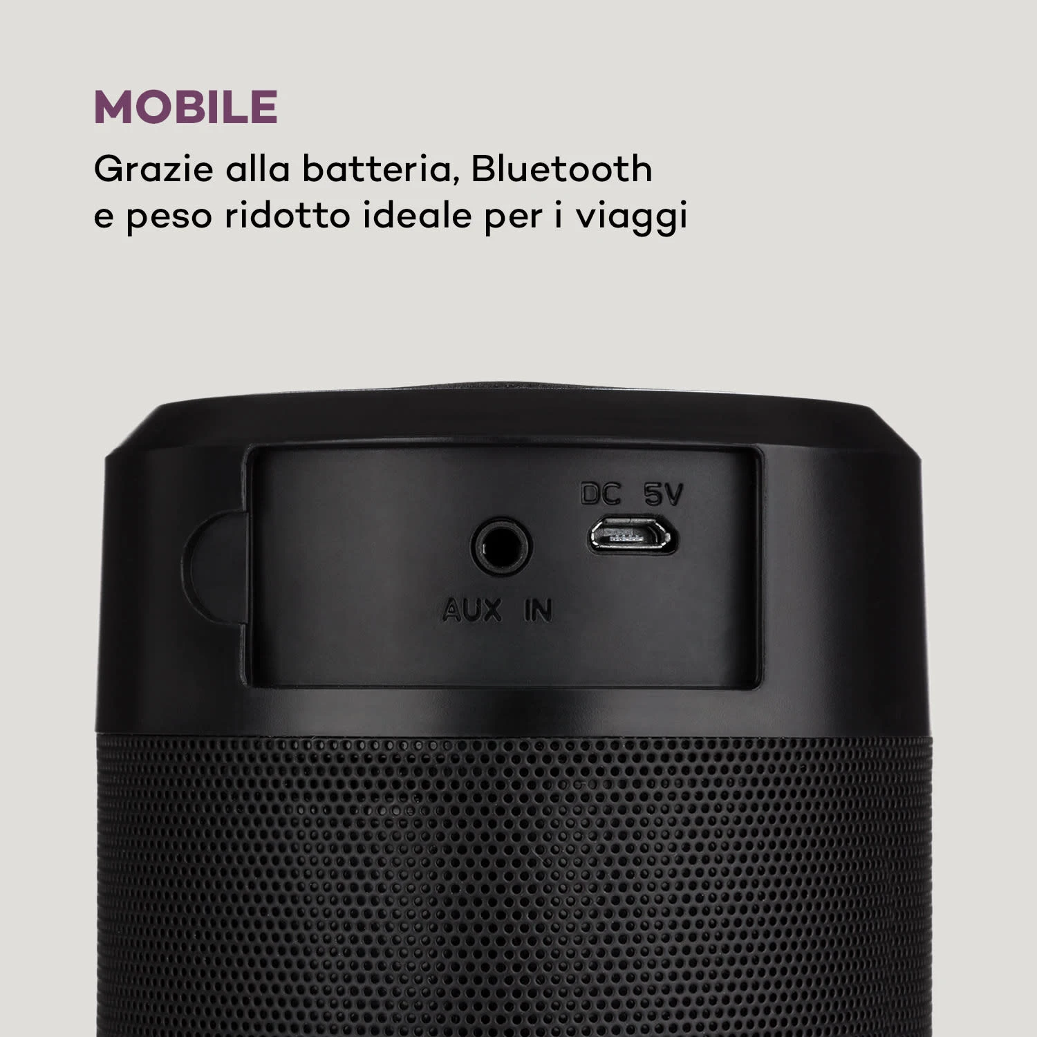 L’altoparlante compatto è ideale da portare in giro e la batteria ha una durata di 5 ore, per un ascolto prolungato. Il subwoofer da 6 cm rende l’altoparlante Intelligence Tube di auna particolarmente potente, raggiungendo una potenza di uscita di 6 Watt RMS. La peculiare disposizione del woofer nell’alloggiamento permette di diffondere il sound a 360° in tutte le direzioni. La batteria viene caricata tramite connessione USB. Una connessione Aux-In consente di collegare lettori MP3 e altri supporti di riproduzione. Da un punto di vista estetico, il design tubolare dell’altoparlante è impreziosito da luci LED a forma di anello.