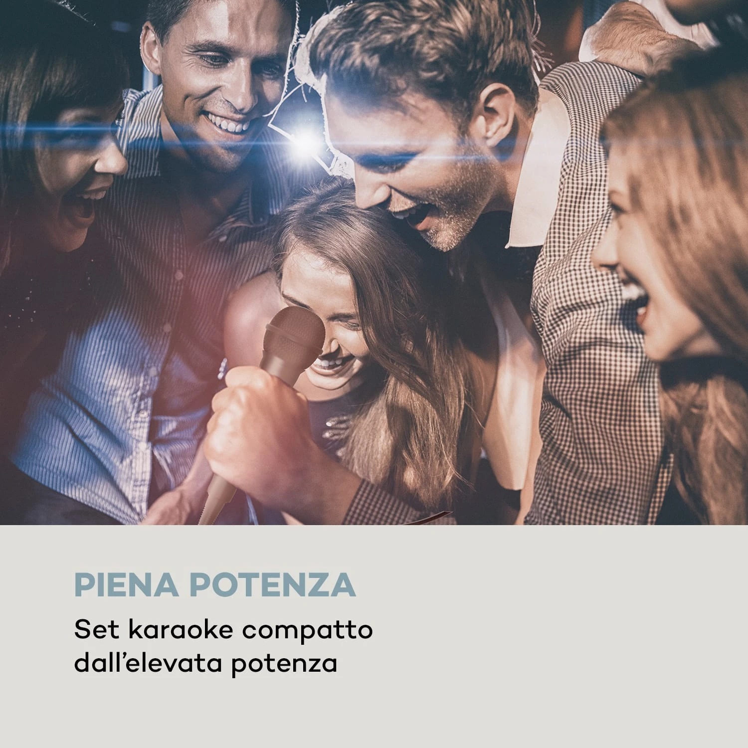 Facciamoci sentire forte! Il Karaoke auna Star 1 Set-karaoke offre ogni sera un’atmosfera conviviale con le sue prestazioni potenti, molte opzioni di connessione e due microfoni inclusi!