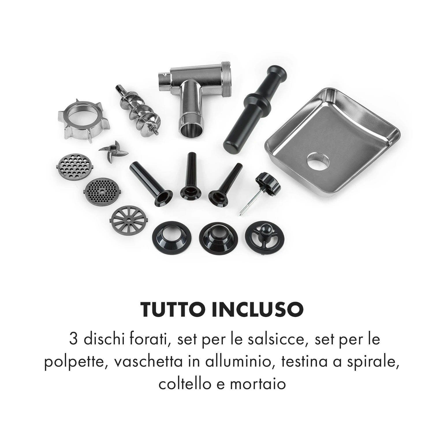 Se volete che qualcosa sia fatto davvero bene, l’ideale è farlo da soli! Questo è il motto del tritacarne Kraftprotz di Klarstein, che trasforma carni di alta qualità in impasti tritati per preparare deliziose salsicce o squisite specialità a base di carne trita. Finalmente saprete davvero cosa state mangiando! Finalmente torna nelle vostre cucine il tritacarne, perché quando si desidera la massima qualità, non si compra una carne trita qualsiasi, ma carne di cui si conosce l’origine e la si trita personalmente, per una differenza che si fa sentire, garantito!