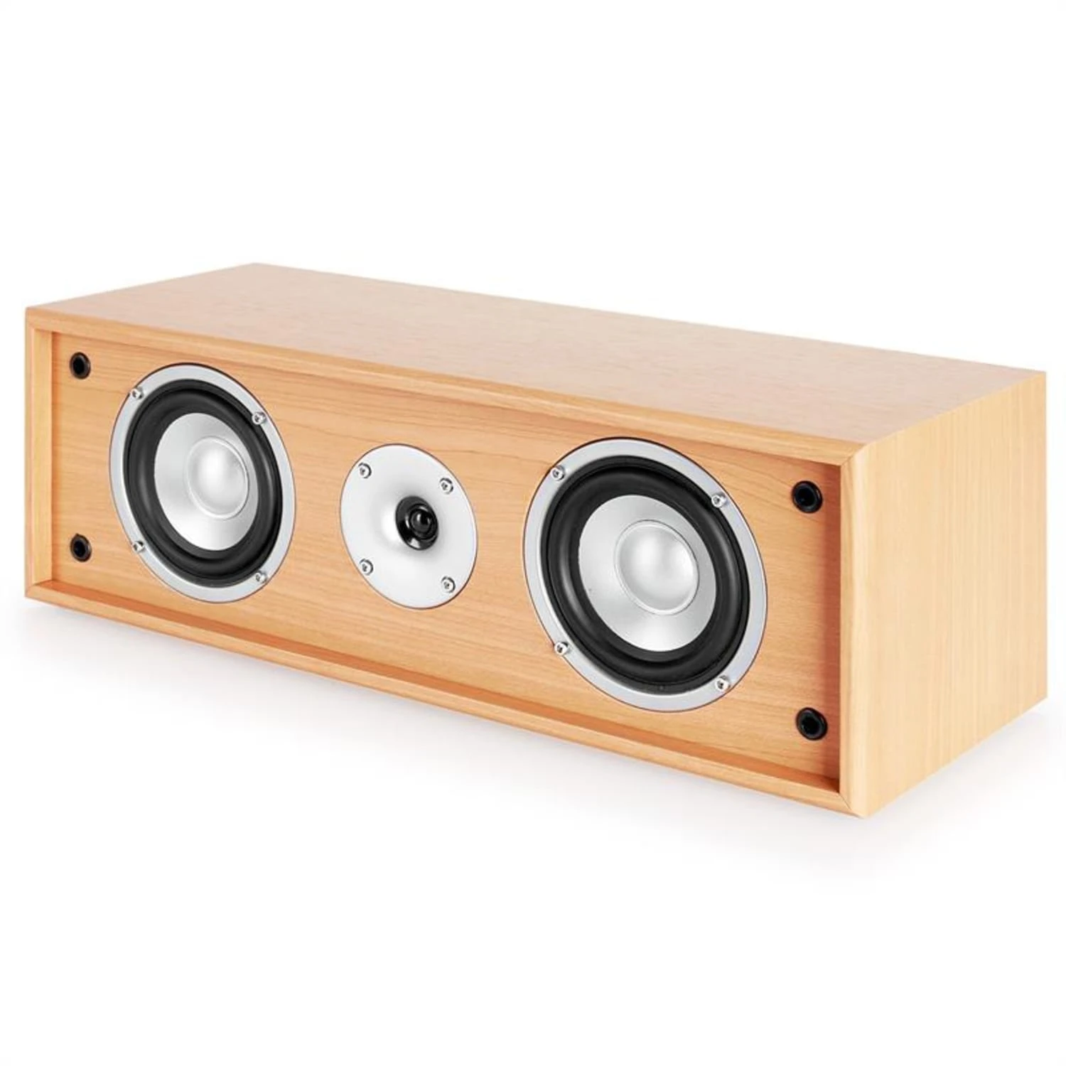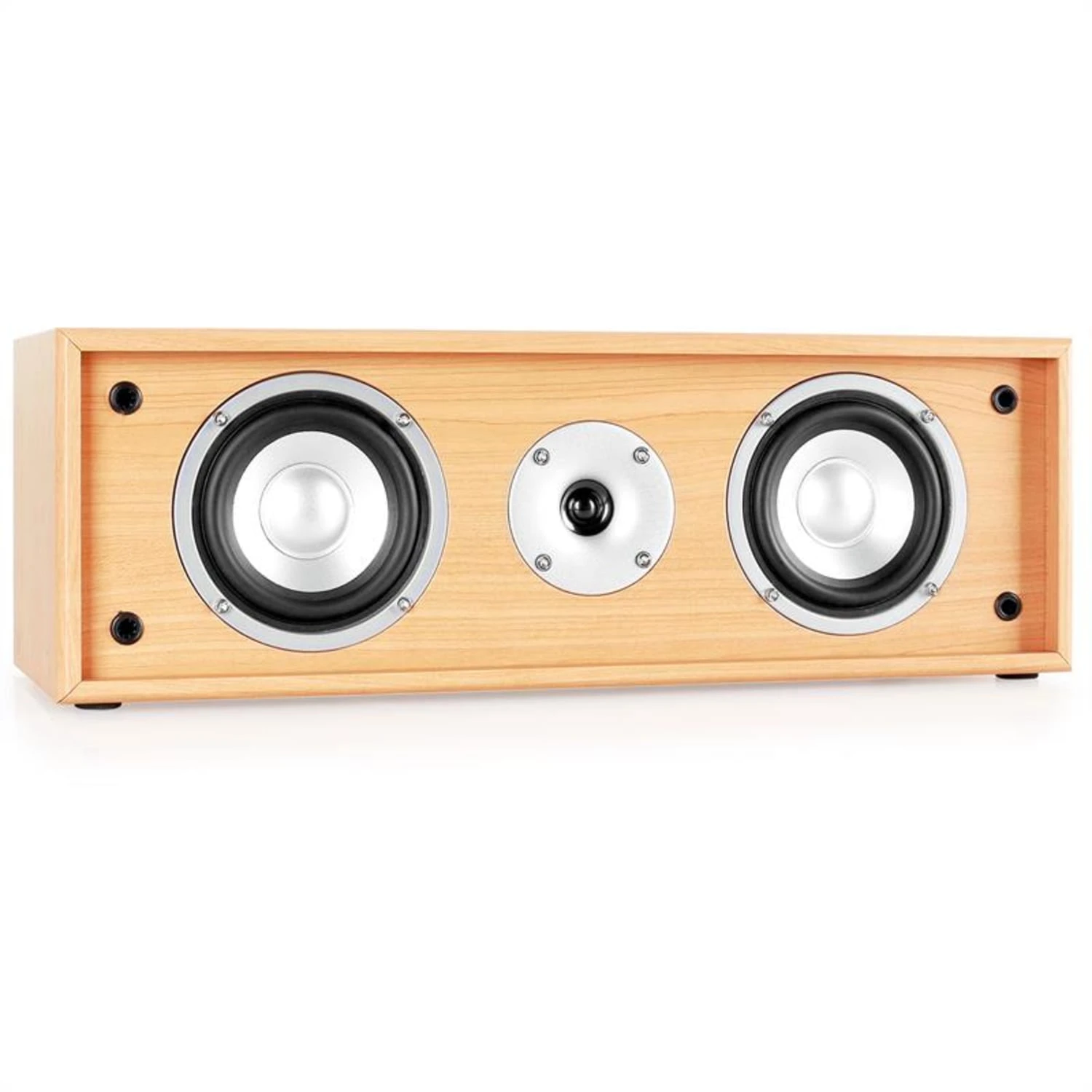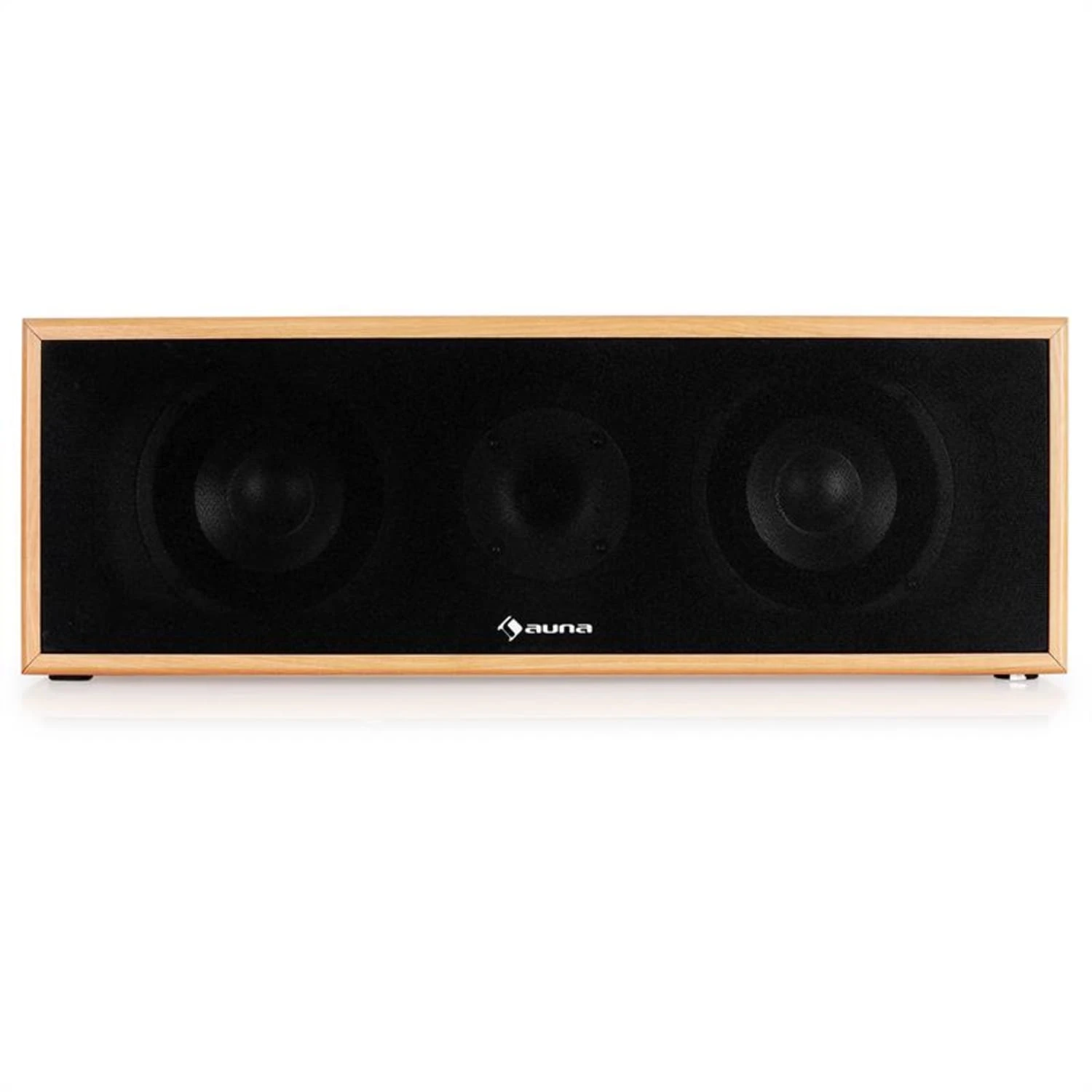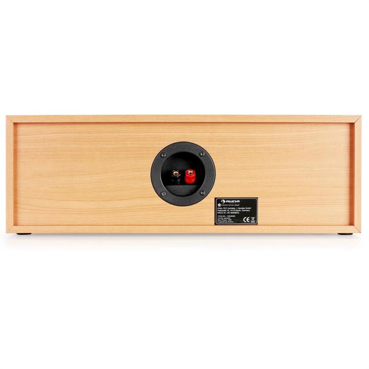 Per entrare in armonio con l’arredamento circostante il diffusore centrale Auna ha delle forme eleganti, una struttura di colore faggio ed una copertura degli altoparlanti rimovibile.