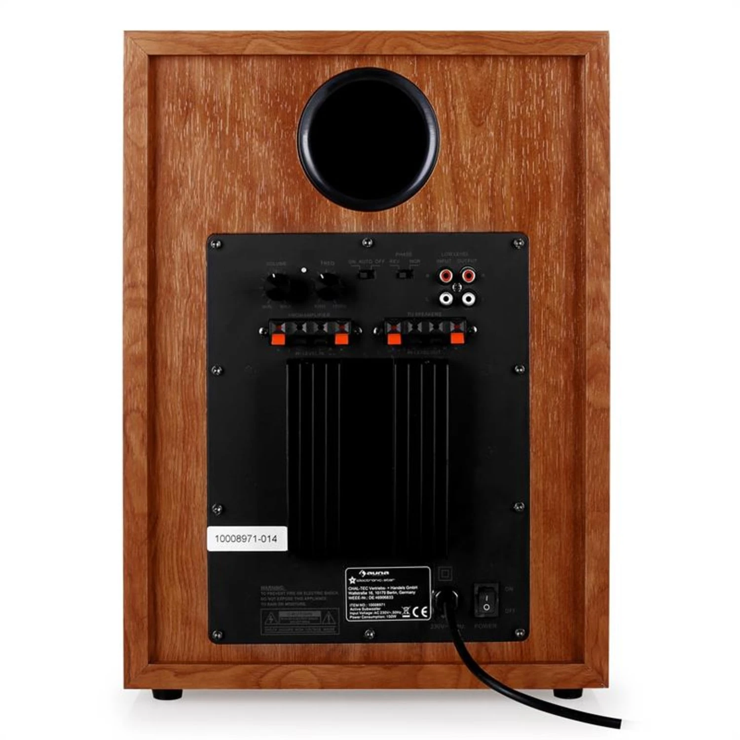 Il subwoofer Auna Linie-300-SW è la soluzione ideale per un utilizzo con sistemi home cinema e garantisce la giusta integrazione di bassi agli altoparlanti stereo.