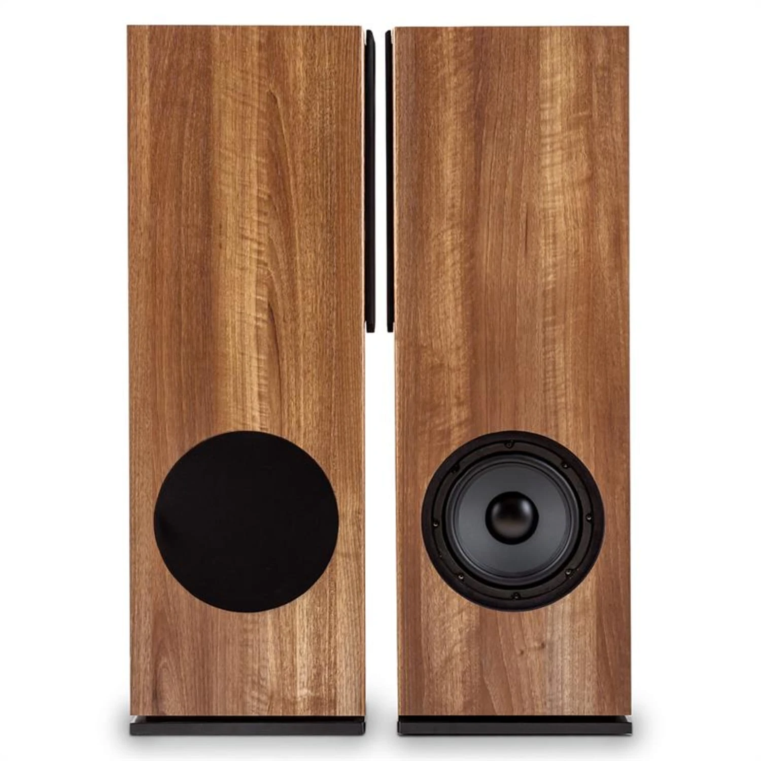 I diffusori Auna Linie 501 FS sono progettati per integrarsi alla perfezione con qualsiasi tipo di arredamento, classico o moderno, mantenendo uno stile elegante e sobrio, con finiture in noce e griglia degli altoparlanti rimovibile.