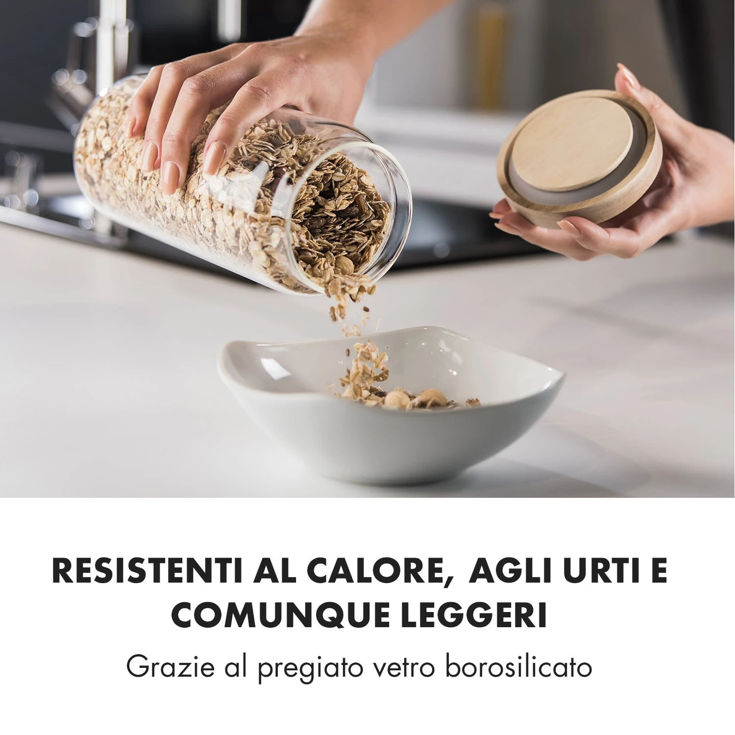 Barattoli senza plastica, d’alta qualità e durevoli dal design elegante in materiali naturali: i barattoli per conserve Lovage di Klarstein.