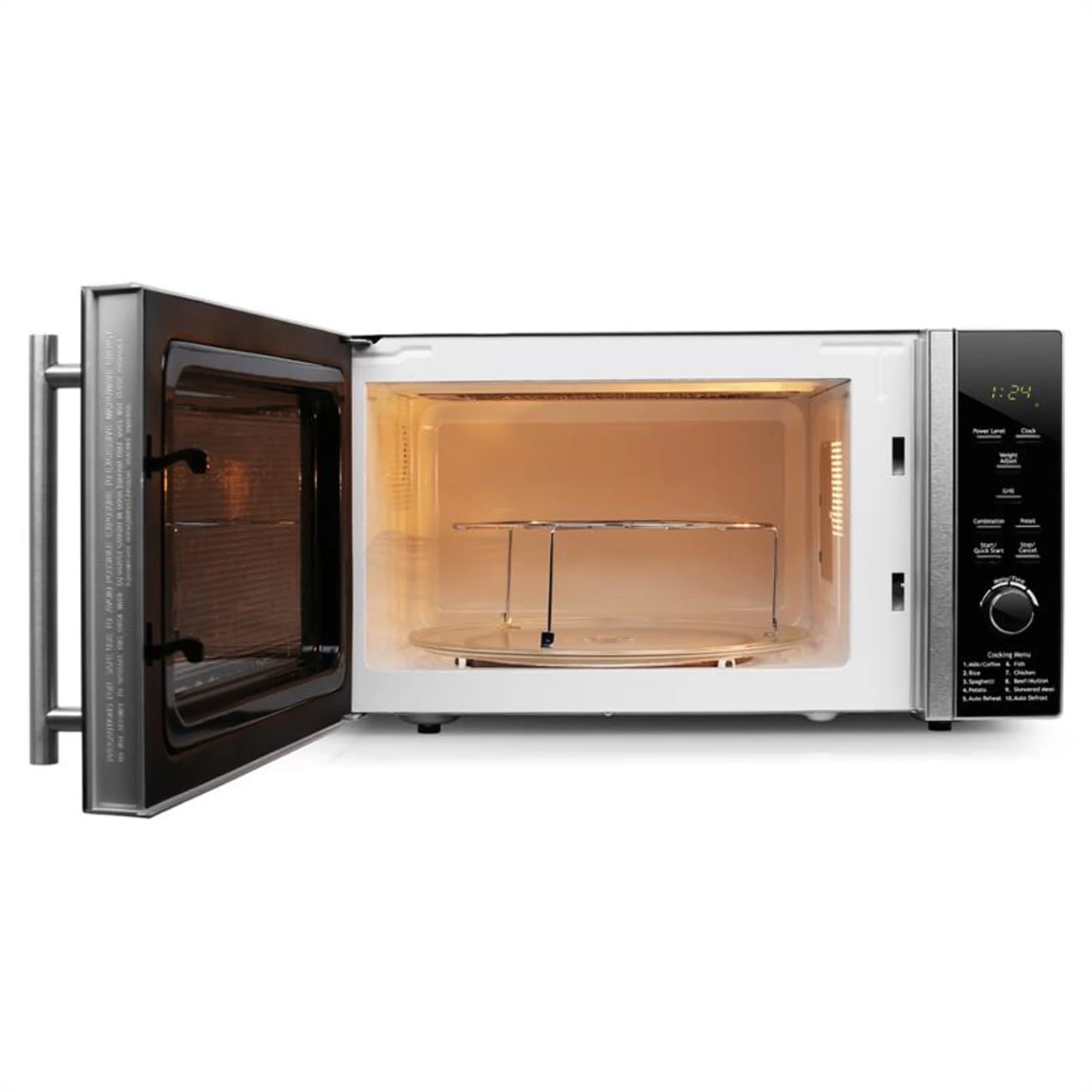 I 28 litri di capacità del Forno a Microonde Luminance Prime di Klarstein sono più che sufficienti per soddisfare le esigenze di quattro persone in pochi minuti grazie alla potenza di 900 Watt. Sia che si tratti di zuppe, riso, patate, pesce o carne – 12 programmi automatici e combinati sono a vostra disposizione per riscaldare, scongelare o grigliare in modo ottimale.